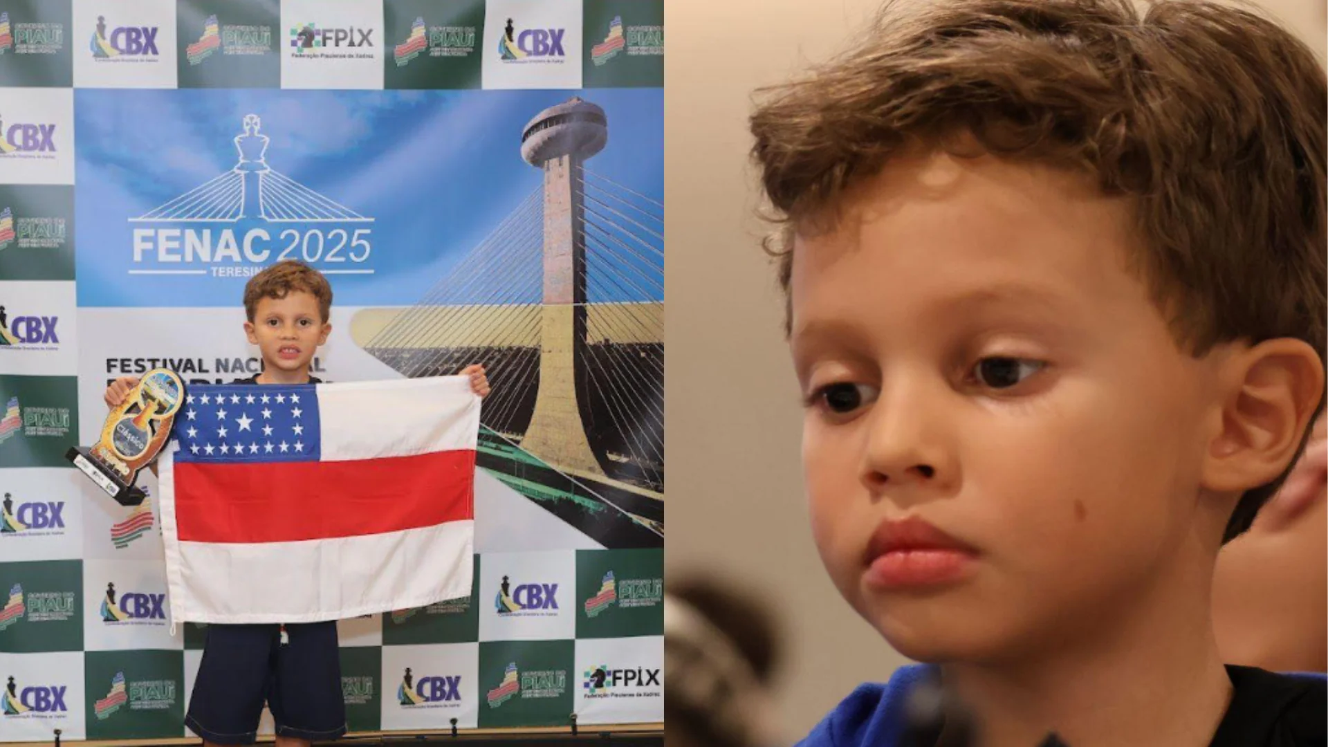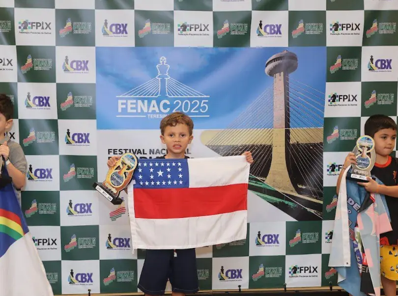 Samuel Silva , de apenas 6 anos, acaba de conquistar o título do bi-campeão brasileiro de xadrez. O pequeno talento de Manaus (AM) brilhou no Festival Nacional da Criança (FENAC) 2025, a maior competição de xadrez infantil do país, realizada neste mês em Teresina (PI).
