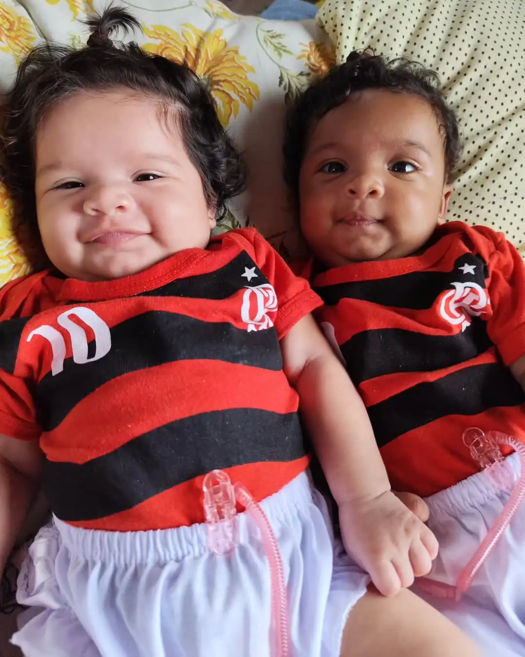 Duas irmãs maranhenses têm encantado a internet não apenas pela fofura, mas por uma característica inusitada: apesar de serem gêmeas, Maryelle e Maylla, de três meses, nasceram com cores de pele diferentes. Uma tem a pele negra; a outra, pele clara. O caso curioso foi compartilhado nas redes sociais por Laianny Santos, de 25 anos, mãe das meninas e moradora de São Luís (MA).