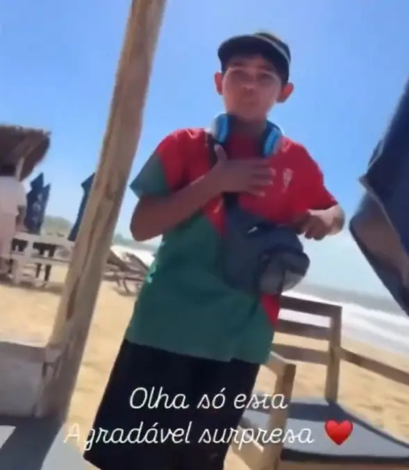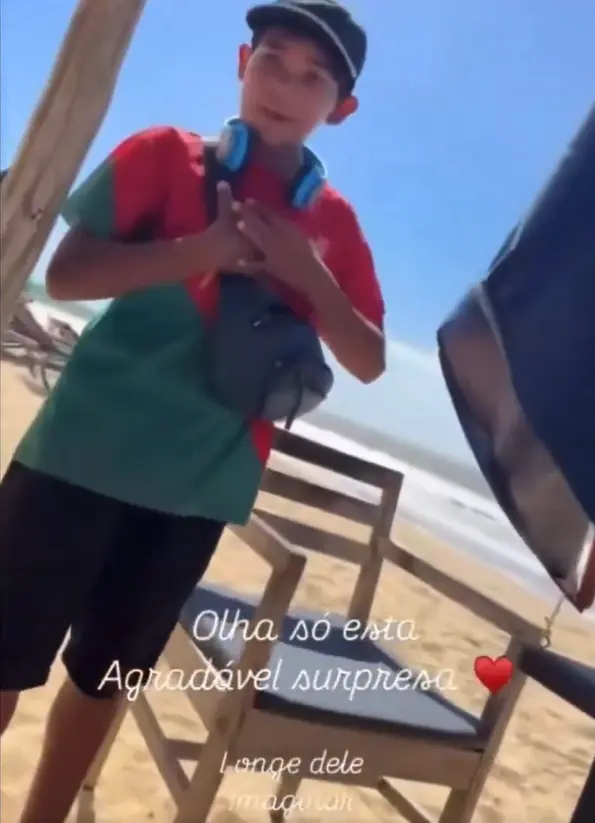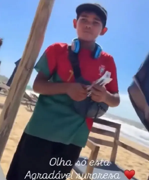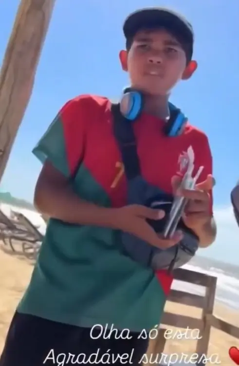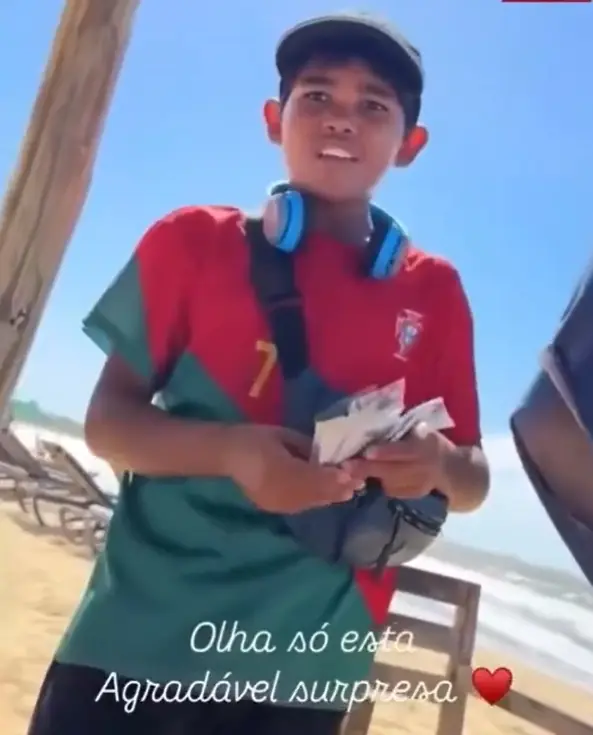 Enquanto vendia lembrancinhas nas areias de Trancoso (BA) para conseguir consertar o celular e a bicicleta, um garotinho protagonizou um momento inusitado e emocionante. Durante a conversa com uma turista, falou com brilho nos olhos sobre sua admiração por Cristiano Ronaldo, sem saber que estava diante de Katia Aveiro, irmã do craque português.