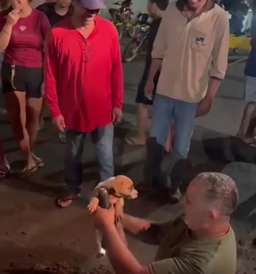 A cadelinha, de apenas 40 dias, foi ouvida por uma agente de limpeza que passava pelo local. Ao notar os latidos desesperados vindos do bueiro, a trabalhadora interrompeu o serviço e se aproximou, encontrando o animal encurralado no fundo da estrutura. Ela rapidamente alertou outros moradores, e a comoção tomou conta do bairro.