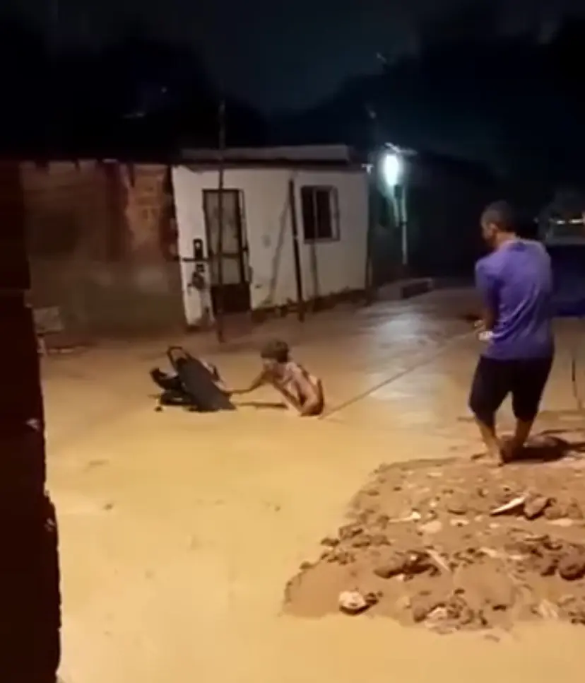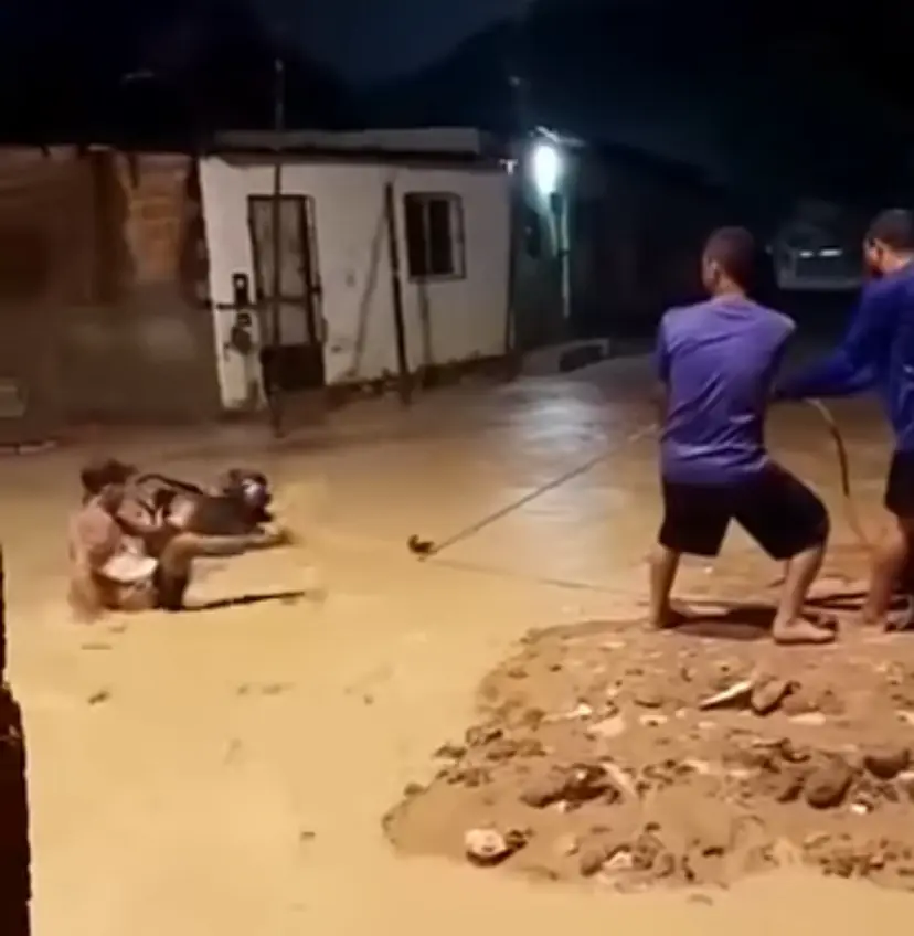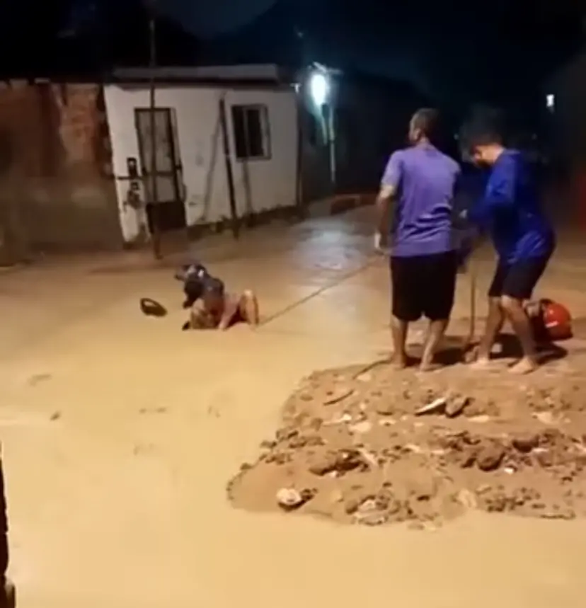 Durante uma forte enchente em Maceió (AL), moradores do bairro Jacintinho se mobilizaram para salvar um jovem que caiu em um buraco coberto pela água enquanto pilotava uma motocicleta. A região foi atingida por intensas chuvas no último fim de semana.