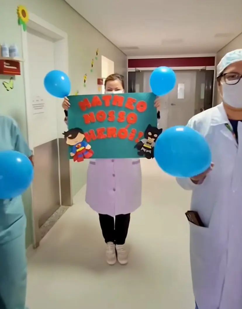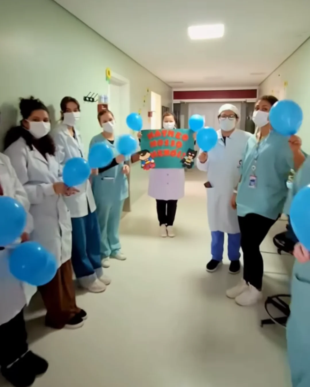 A alta hospitalar marcou o encerramento de um período de quase um ano de cuidados intensivos e acompanhamento médico. Durante todo esse período, a equipe acompanhou cada etapa do tratamento de Matheo.