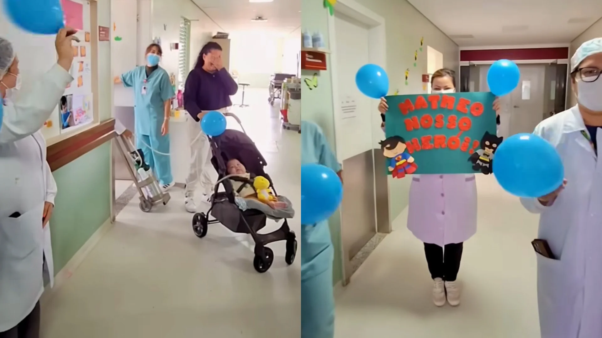 O menino seguirá sendo acompanhado pela equipe médica do hospital. Nos comentários da publicação, profissionais de saúde que participaram do tratamento do menino registraram mensagens de apoio. “Matheo tão pequenino e tão sorridente, não tinha como não ficar babando por ele quando fazíamos seus exames. Saúde e felicidade pra família, um abraço da equipe do raio-x”, comentou uma profissional. Outra destacou: “Despedidas lindas assim sempre aconteceram, mas finalmente agora estão sendo divulgadas. Momentos inspiradores merecem ser compartilhados”.