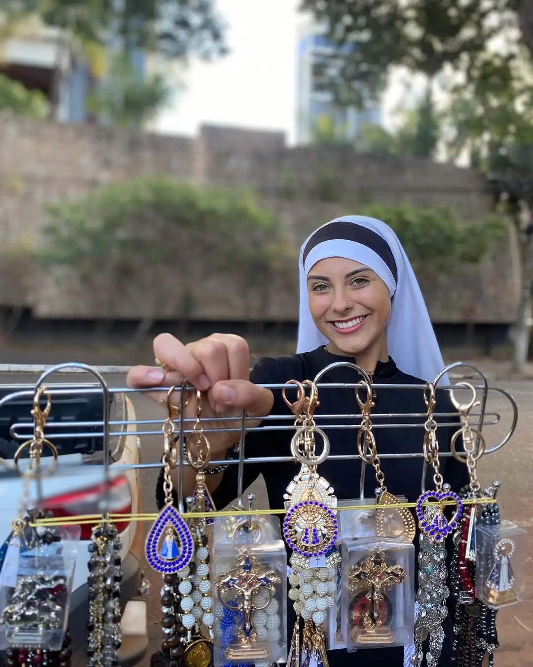 A freira Kamila Cardoso, conhecida como irmã Eva, de 21 anos, viralizou nas redes sociais ao ser gravada vendendo terços em um bar de Goiânia (GO). De acordo com informações divulgadas pelo G1, antes de dedicar sua vida à missão religiosa, ela teve uma trajetória como modelo e miss.
