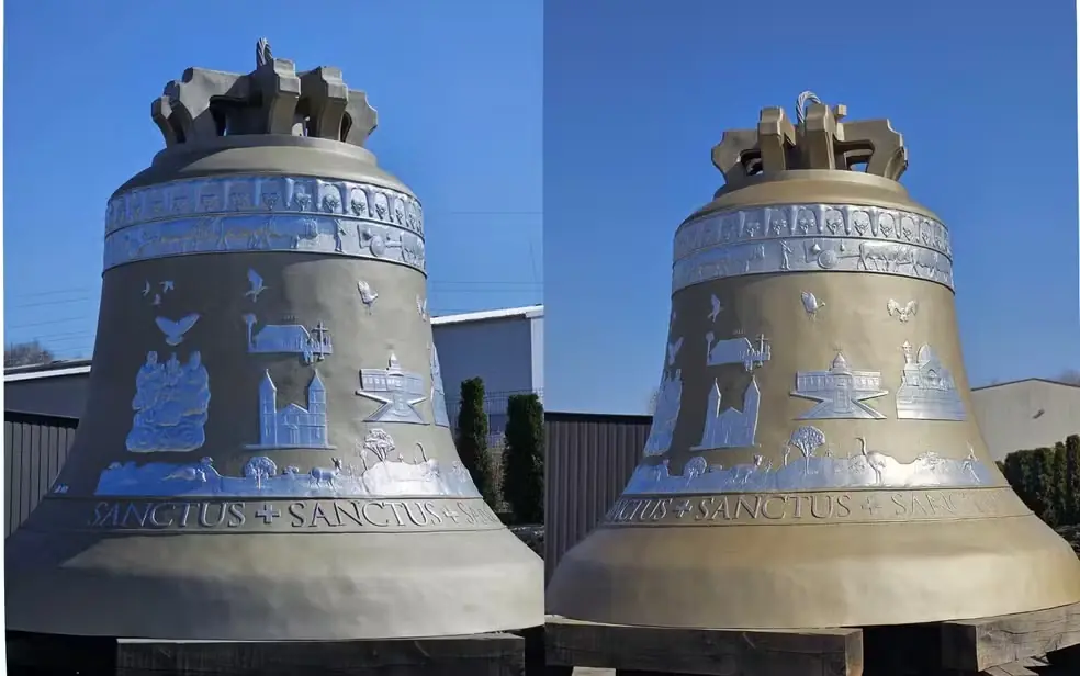 Fabricado com uma liga especial de bronze, o Vox Patris é mais do que um objeto religioso – é um símbolo de fé e perseverança. Ele será colocado em uma estrutura provisória de 14 metros de altura, ao lado de dois sinos menores, batizados de São João e São Lucas. A montagem do mecanismo que permitirá que o sino toque começa já nesta segunda-feira (2/6).