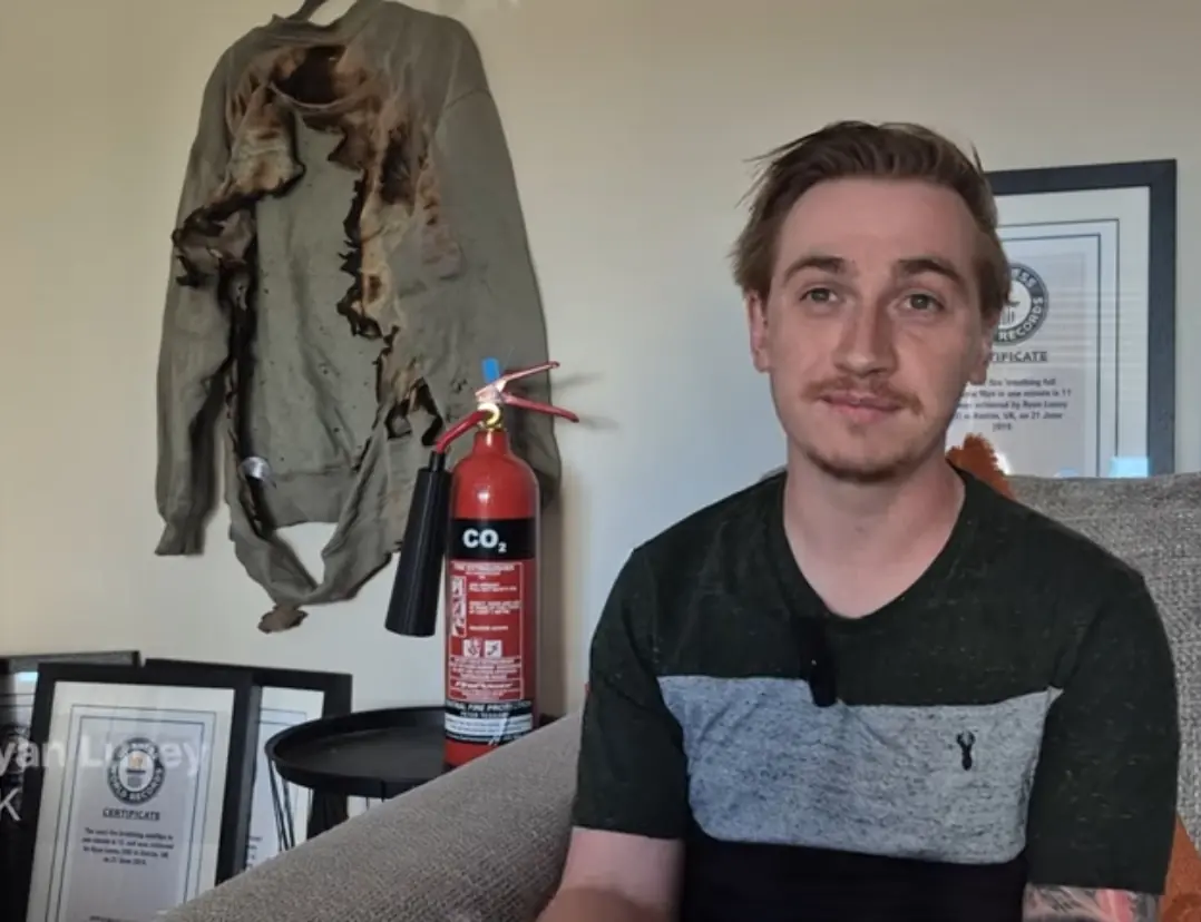Ryan Luney, de 28 anos, residente no Reino Unido, entrou para o Guinness World Records ao completar sete mortais para trás em 30 segundos enquanto pegava fogo em seu corpo inteiro. Na tentativa, ele usou roupas especiais e camadas de gel para se proteger das chamas.
