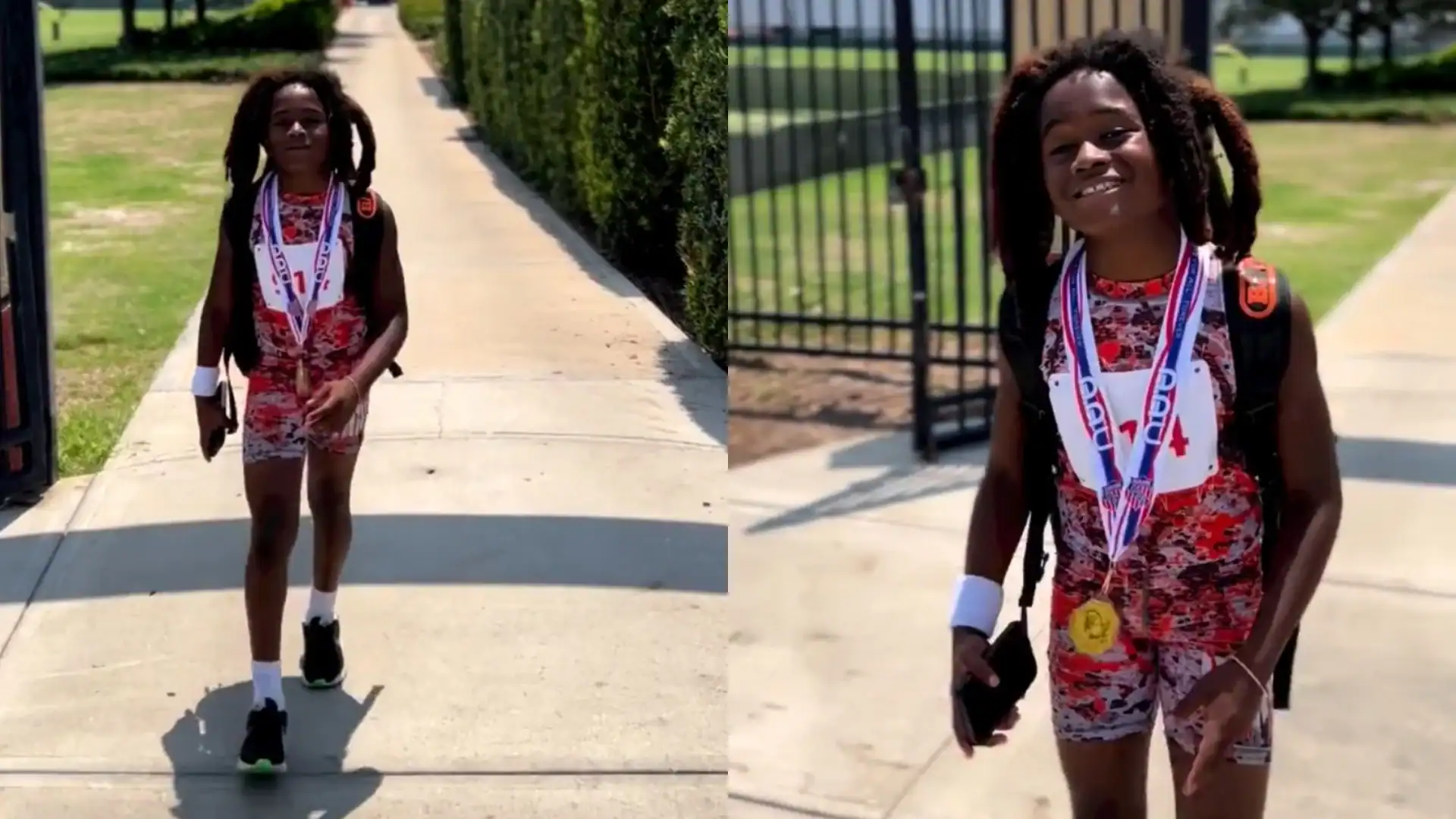 O pai explica que o filho tem como meta seguir carreira nos dois esporte: “Ele sempre diz: ‘Os dois – quero fazer os dois, papai’. Fizemos uma pesquisa, e há 40 jogadores que competiram nas Olimpíadas e na NFL. Então, este é o nosso objetivo”.