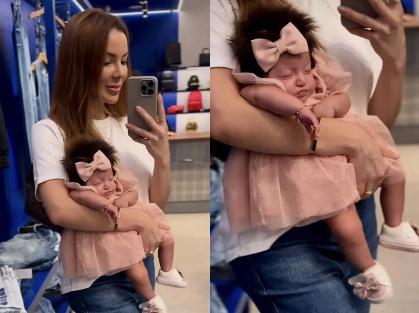 “Vocês acham que essa princesa é de verdade ou uma bebê reborn? Porque com tanto cabelo, pele perfeita e esse olhar encantador… até a médica duvidou na hora do parto”, escreveu Gabriela em outro trecho do post.