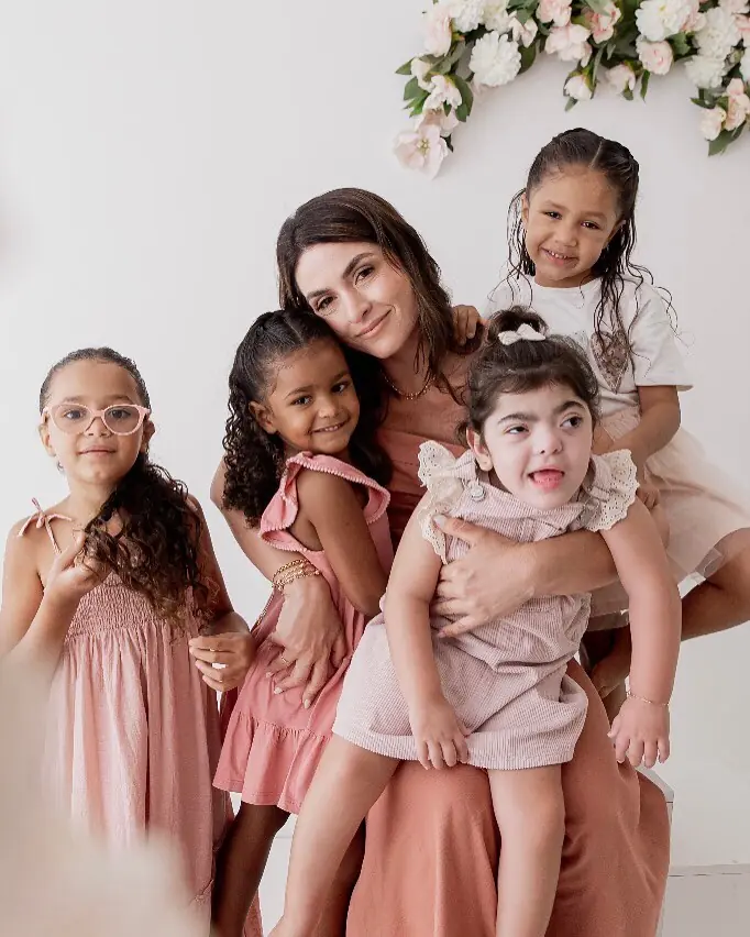 A empresária e influenciadora Renata Darzi e o marido, Pedro, decidiram ampliar a família após vivenciarem a maternidade atípica com Maria Luiza, filha diagnosticada com paralisia cerebral. O casal, que sempre desejou ter muitos filhos, adotou três irmãs nordestinas, Maria Valentina, 4 anos, Maria Cecília, 5, e Maria Fernanda, 7 e hoje vive com quatro meninas em casa.