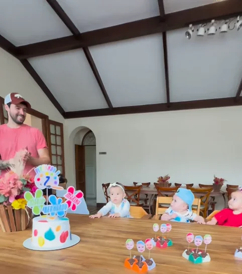 O vídeo da comemoração conjunta de sete meses viralizou nas redes. “Já tínhamos feito um mêsversário do Bernardo com a Marina. Nesse dia, a Carol estava viajando. Agora, com sete meses, conseguimos reunir os três e todas as famílias. Foi muito incrível! Foi emocionante!”, comemorou.
