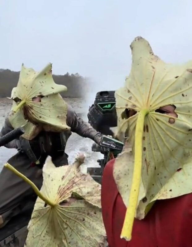 Um vídeo com duas pessoas usando folhas de lótus como máscaras faciais viralizou nas redes sociais e deu origem a uma nova tendência na China. A prática, que começou na província de Sichuan, se espalhou por países vizinhos como a Tailândia. As folhas são usadas com dois furos para os olhos, lembrando fantasmas de desenhos animados antigos, e aparecem principalmente em vídeos de pessoas pilotando motos.