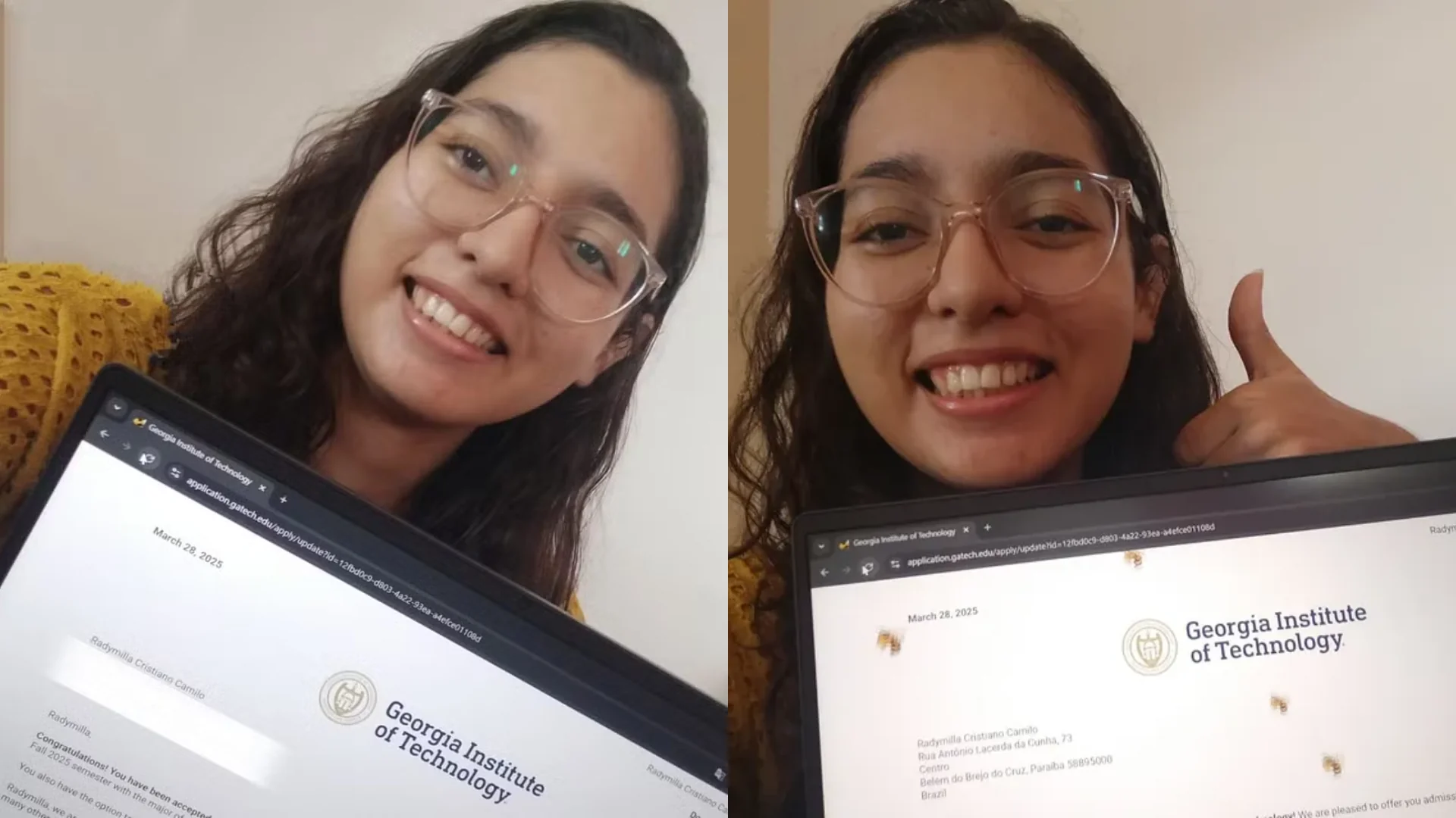 “Foi um sentimento surreal. A decisão da Georgia Tech foi uma das últimas que recebi. E, sendo sincera, eu não estava com muitas esperanças. Quando li a primeira palavra da carta de aceitação, ‘Congratulations!’, fiquei extremamente feliz”, contou Radymilla ao G1.