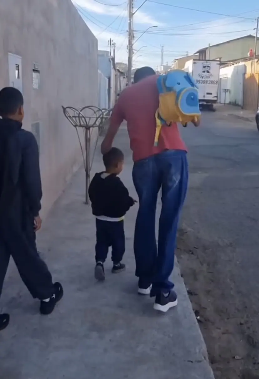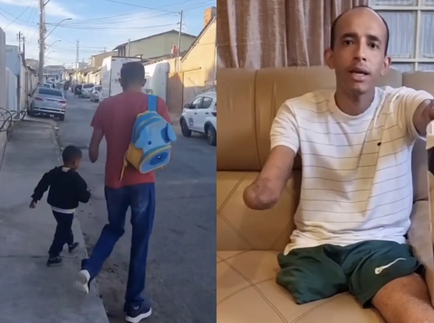 Pai sem mãos e uma perna anda 6 km por dia para levar o filho à escola: “Não desisti de viver”