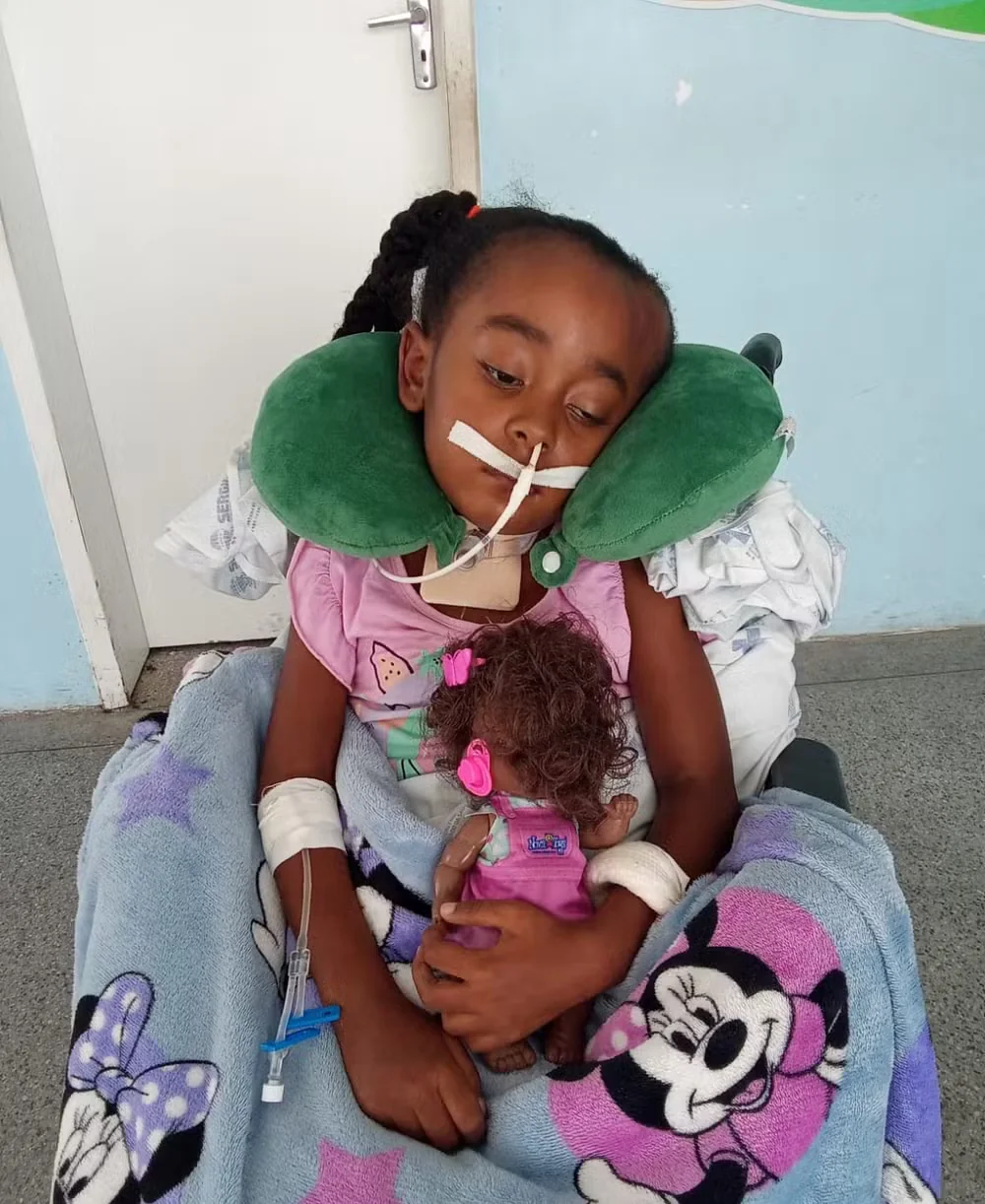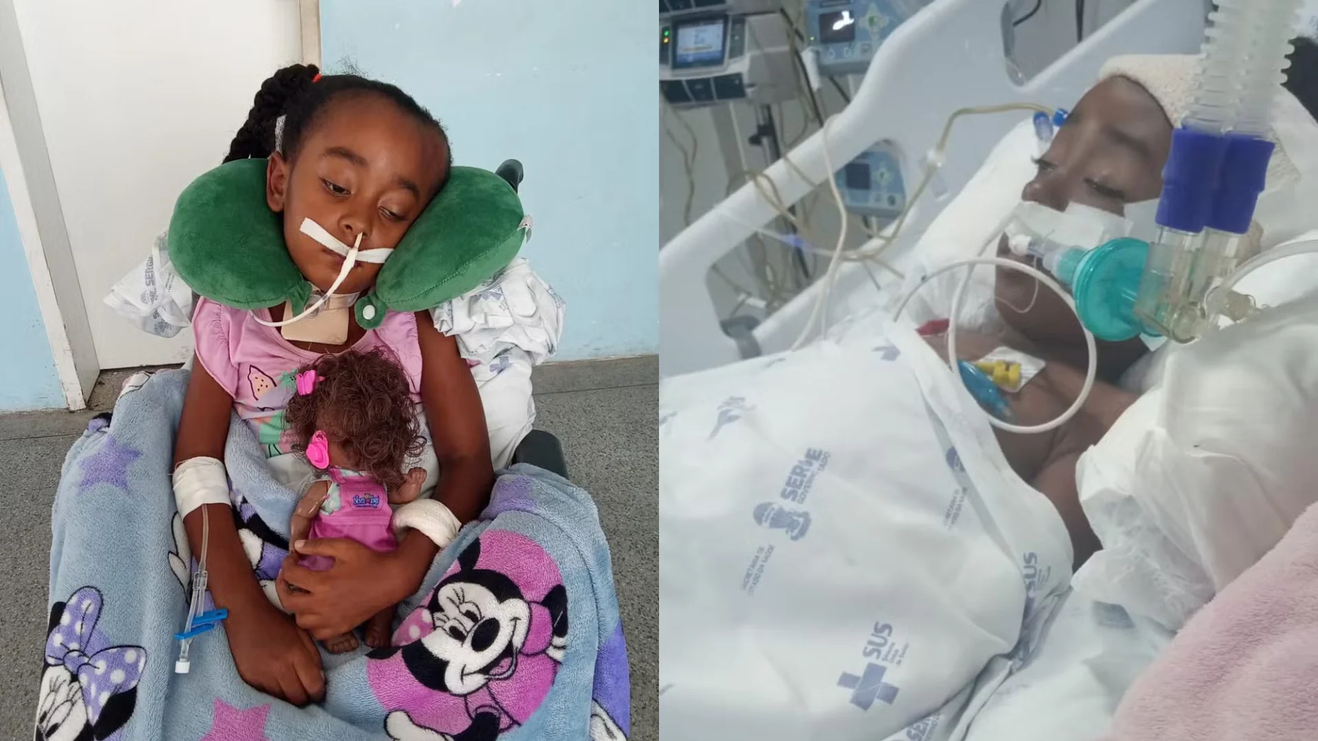Mariah Alice dos Reis Santos, de 5 anos, passou por uma série de complicações graves que culminaram em um AVC. A menina, que mora em Aracaju (SE), ficou 28 dias internada na UTI, passou por coma induzido e precisou ser submetida a uma cirurgia de emergência no crânio.