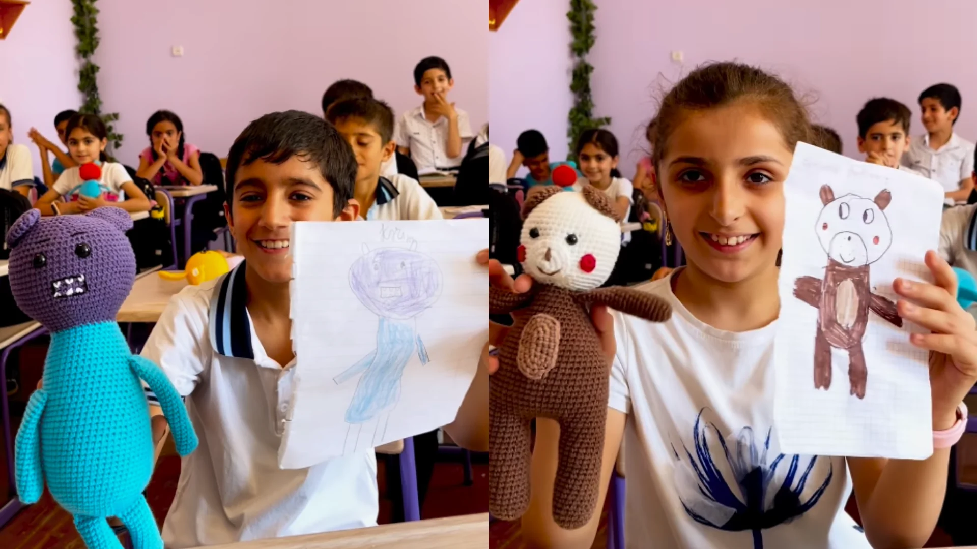 Uma professora do Azerbaijão emocionou as redes sociais ao transformar os desenhos feitos pelos próprios alunos em bonecos de amigurumi, técnica japonesa de crochê. A ação, registrada em vídeo e publicada no Instagram, mostra o momento em que as crianças recebem os brinquedos inspirados em suas criações no papel.