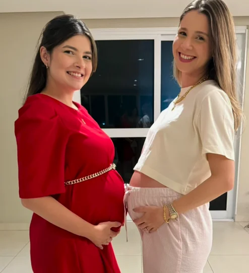 Elas acompanharam juntas todas as fases da gestação: “Eu creio que foi uma das experiências mais marcantes da minha vida. Ter alguém tão próxima para dividir cada fase da gestação fez tudo ser ainda mais especial. Um vínculo que já era forte se tornou ainda mais profundo com a maternidade”.