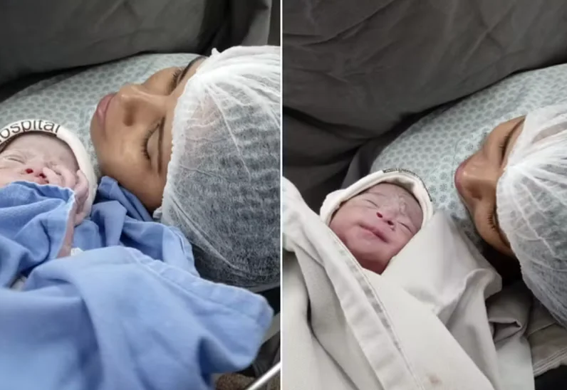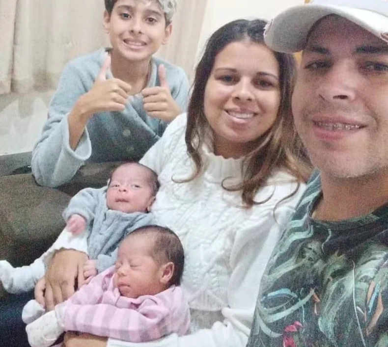A gestação exigiu monitoramento rigoroso, mas transcorreu bem. Paloma trabalhou até o sétimo mês e, depois, entrou em repouso. No dia 13 de abril, três dias antes da data prevista para o parto, começou a sentir contrações fortes e perdeu líquido. Foi encaminhada às pressas para um hospital em Bragança Paulista, com estrutura adequada para os recém-nascidos. Sem tempo para registros, a equipe a levou direto ao centro cirúrgico: um dos bebês estava com cinco voltas do cordão no pescoço e posicionado sob a costela.