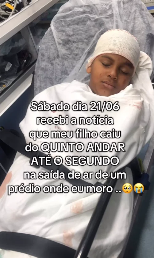 Felipe, de 11 anos, sobreviveu a uma queda do quinto ao segundo andar do prédio onde mora com a família em Jacarepaguá, no Rio de Janeiro. O acidente aconteceu no último dia 21 de junho, enquanto o menino brincava em casa. Ele foi socorrido por um vizinho e levado às pressas para o hospital.