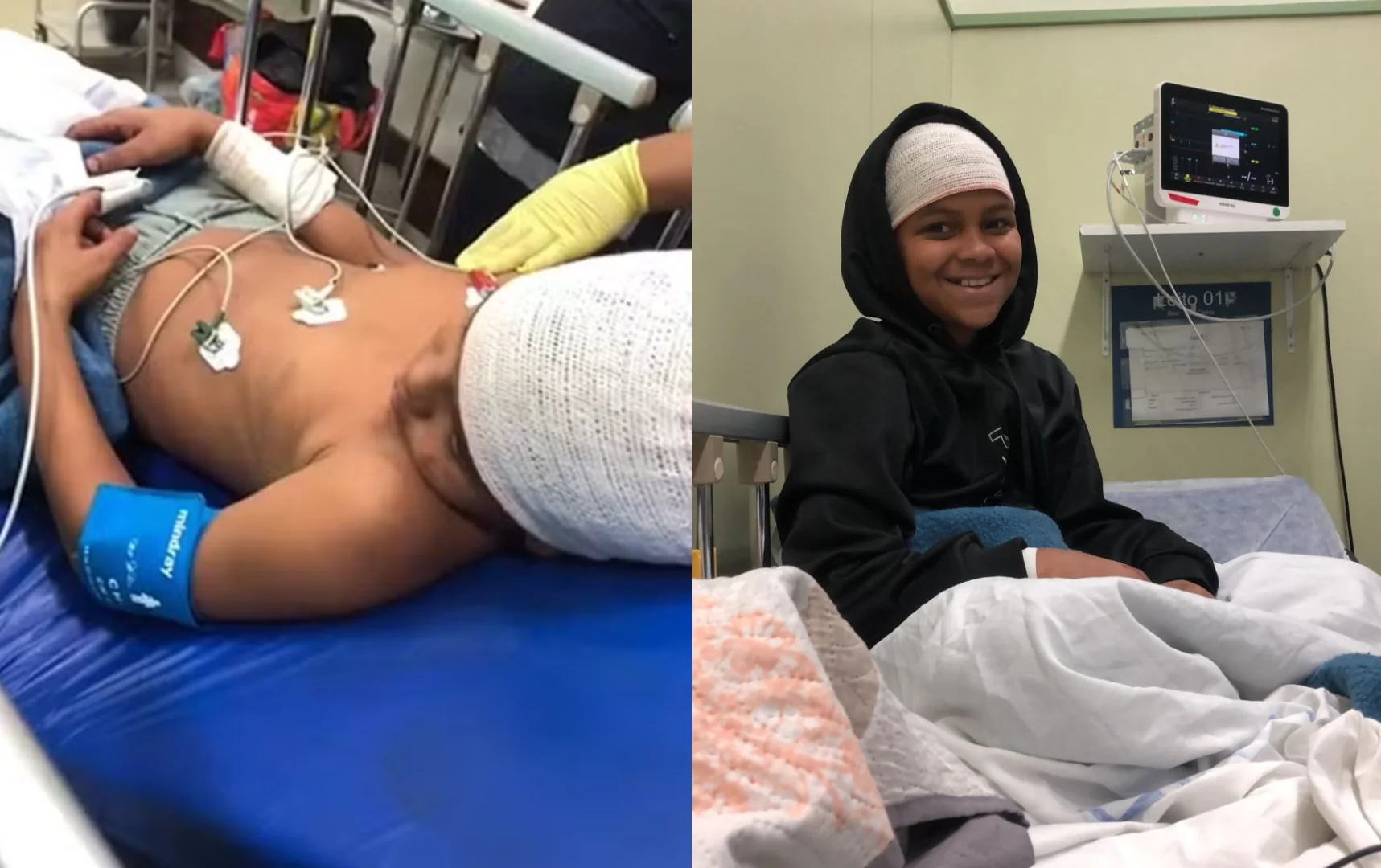 Felipe foi atendido com urgência e passou por diversos exames. Segundo a família, ele teve uma fratura na cabeça, levou apenas um ponto e ficou com escoriações pelo corpo. Após 6 horas de observação neurológica, permaneceu internado até 24 de junho por precaução, devido a episódios de dor de cabeça e vômito.