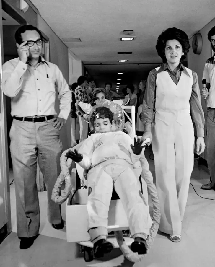 Nos primeiros anos, a “bolha” ficou dentro do hospital; à medida que crescia, instalou-se uma versão maior na casa da família. Mesmo confinado, David desfrutava de alguns confortos: televisão, uma sala de brinquedos em ambiente esterilizado e, para breves saídas, um traje especial desenvolvido pela NASA, conectado a filtros de ar que permitiam passeios curtos no jardim dos Vetter.