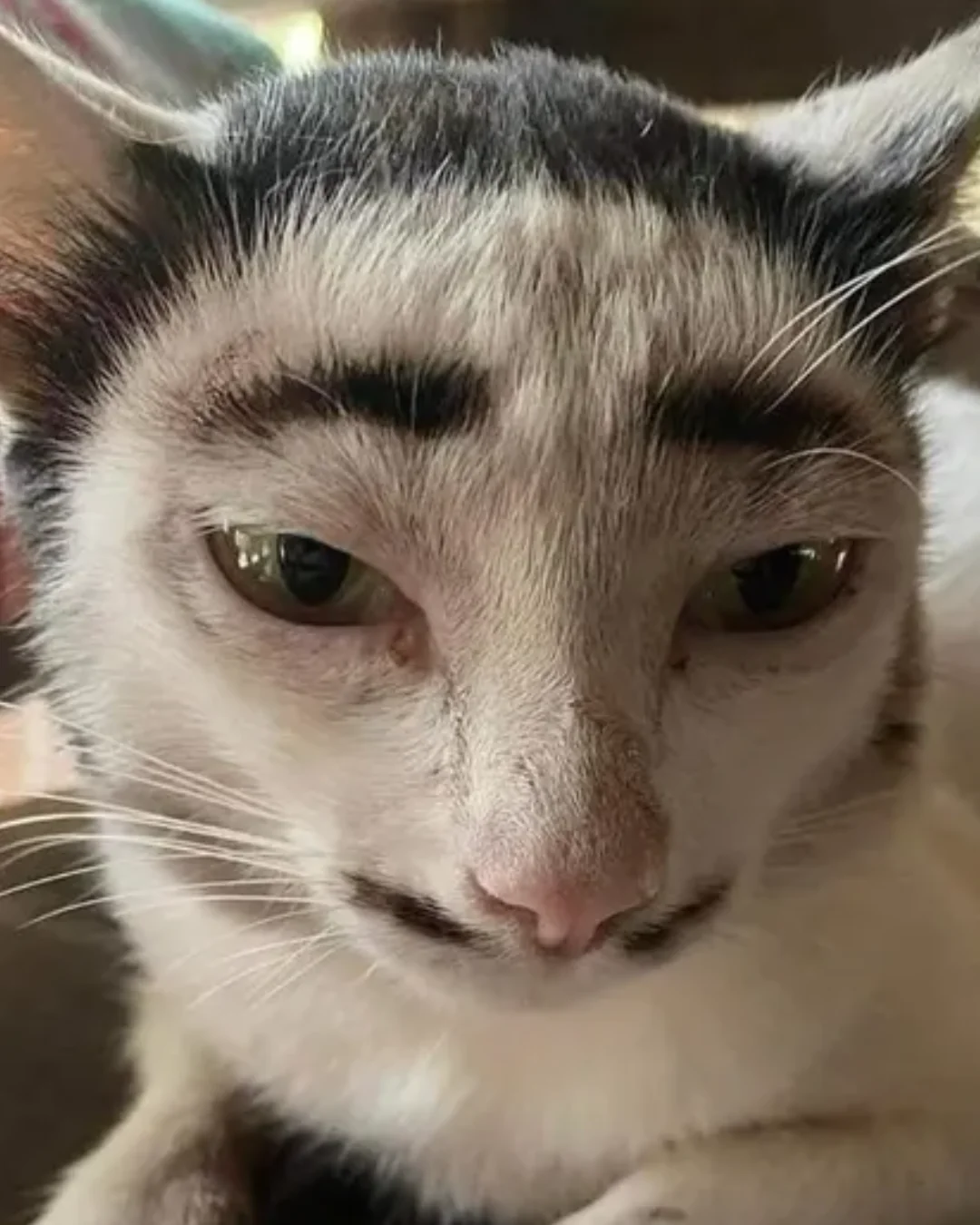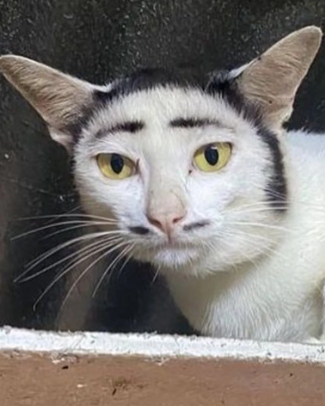 Um gato com marcações faciais incomuns chamou a atenção nas redes sociais após fotos do animal ganharem milhares de compartilhamentos. O felino nasceu com manchas escuras que formam sobrancelhas e um pequeno bigode, criando a impressão de estar sempre “desapontado” com o mundo ao redor.