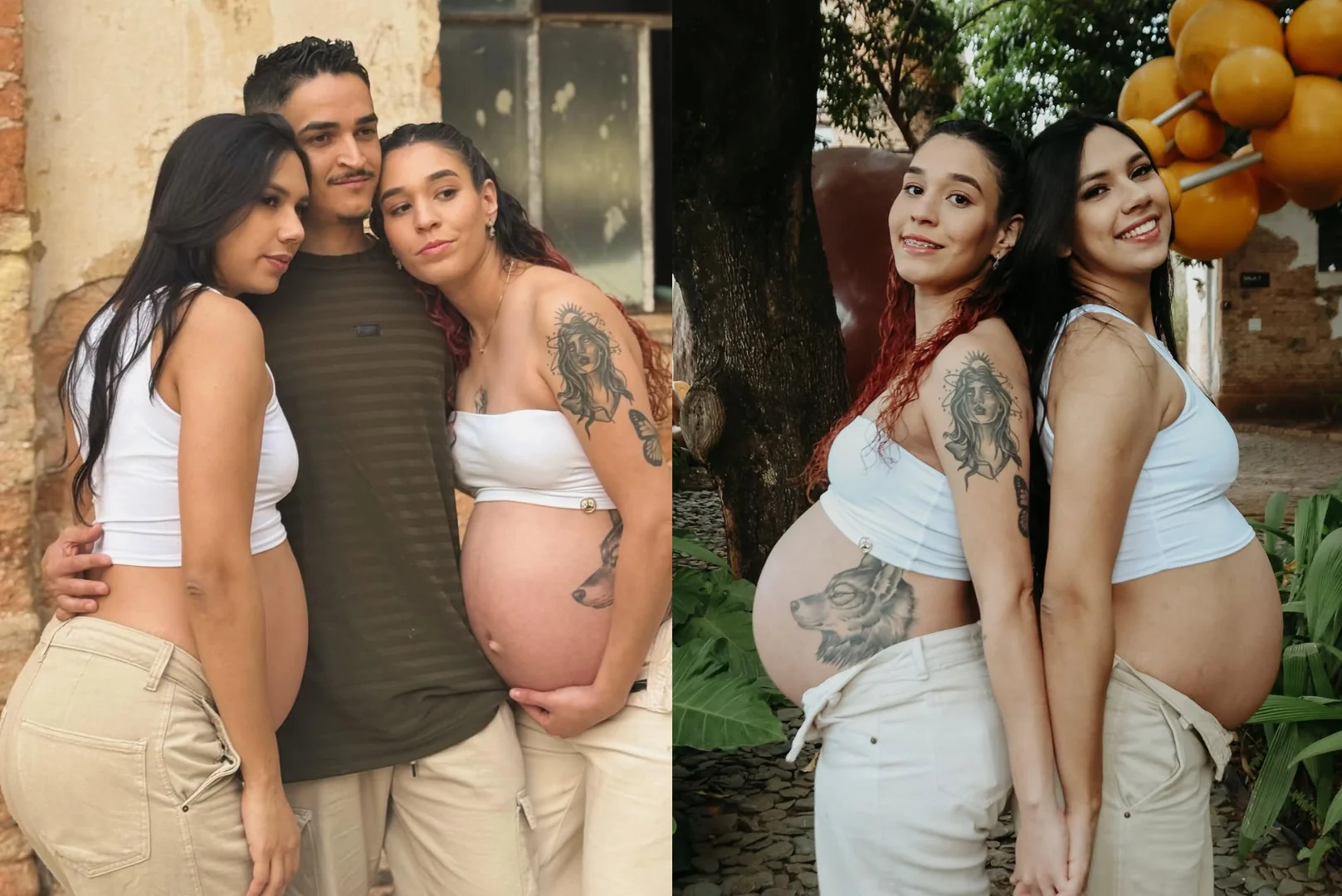 Thaliny, de 24 anos, e Philippe, de 32, estavam juntos há cinco anos quando conheceram Julia, de 26. O que começou como amizade evoluiu para um relacionamento a três, e hoje o trisal, que vive em Salto (SP), chama atenção nas redes sociais ao anunciar que duas das integrantes estão grávidas ao mesmo tempo.