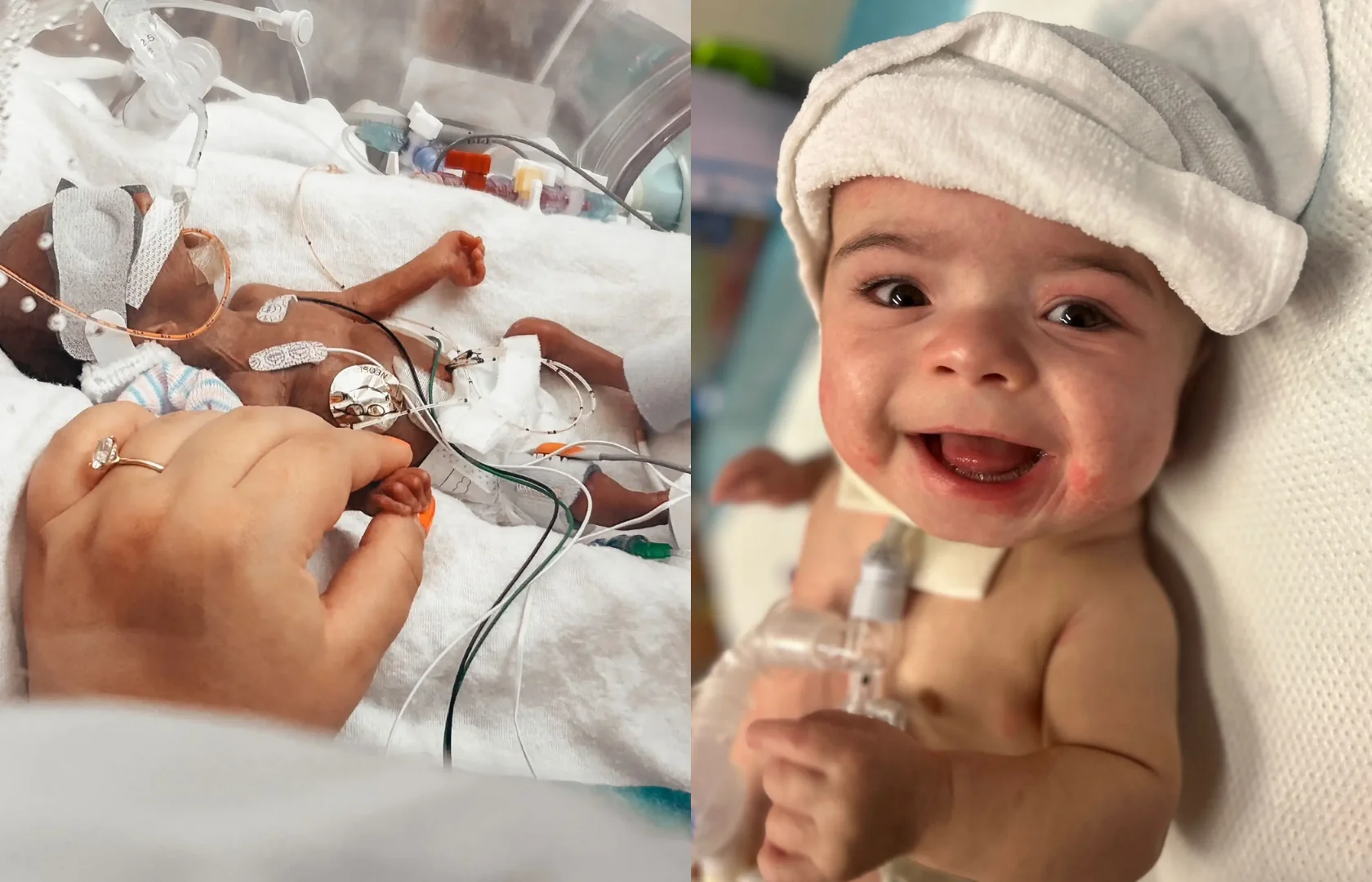 Ao nascer, com apenas 450 gramas, Barrett foi levado imediatamente para a UTI neonatal. Ele foi diagnosticado com uma forma grave de displasia broncopulmonar, doença pulmonar crônica associada à prematuridade, e precisou ser intubado por cerca de nove meses. “Dentro da primeira semana de vida, ele teve uma infecção na corrente sanguínea que, junto com o ventilador, deu a ele cerca de 30% de chance de sobrevivência em alguns dias muito difíceis”, contou Carli.