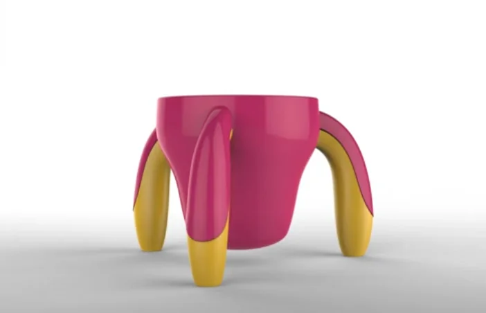 A primeira versão da caneca tinha três pés integrados na base, o que aumentava a estabilidade e diminuía o risco de tombar. A solução chamou a atenção do pai de Lily, que decidiu buscar financiamento coletivo em plataformas como Kickstarter e Indiegogo para iniciar a produção. A campanha arrecadou recursos suficientes e resultou em milhares de unidades vendidas, primeiro em plástico e depois em versões de cerâmica.