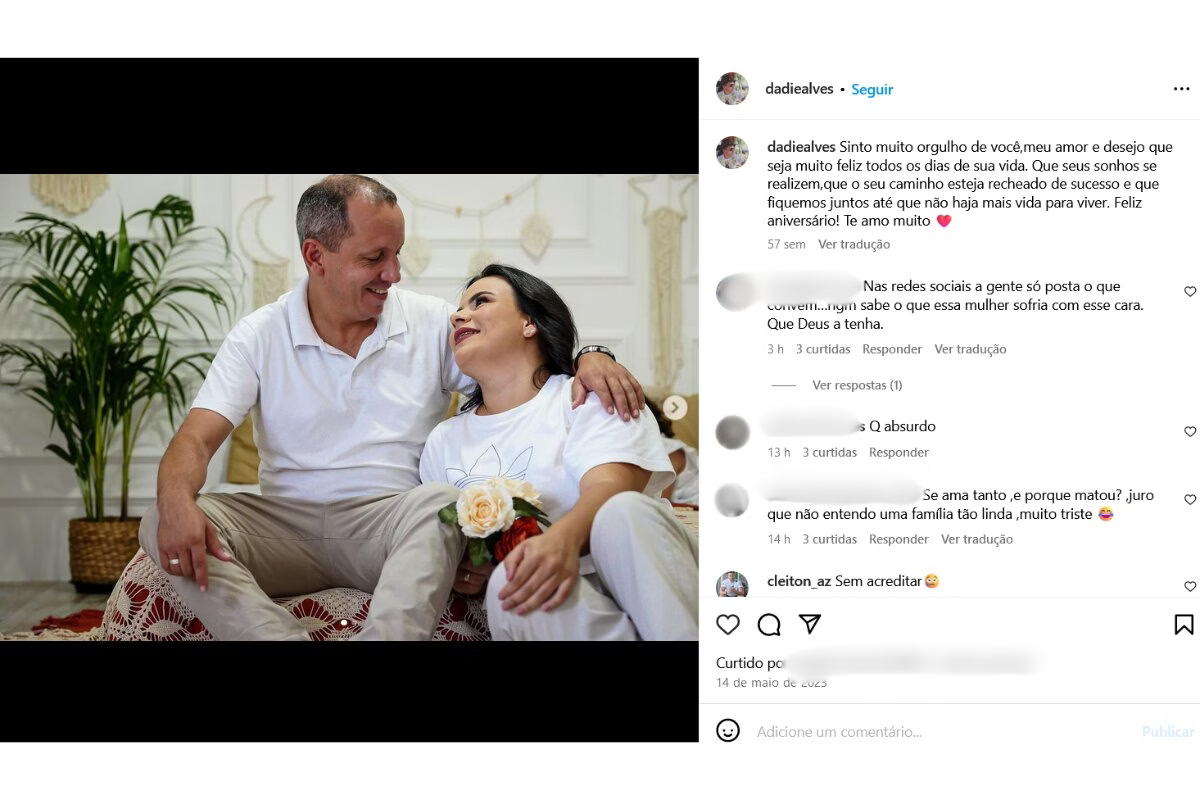 Além da pena de prisão, o réu foi condenado a pagar uma indenização mínima de R$ 100 mil à filha do casal, de apenas 4 anos. O caso teve grande repercussão, especialmente devido à postagem feita por Dadie nas redes sociais meses antes do crime, onde desejava sucesso à esposa e declarava amor eterno.