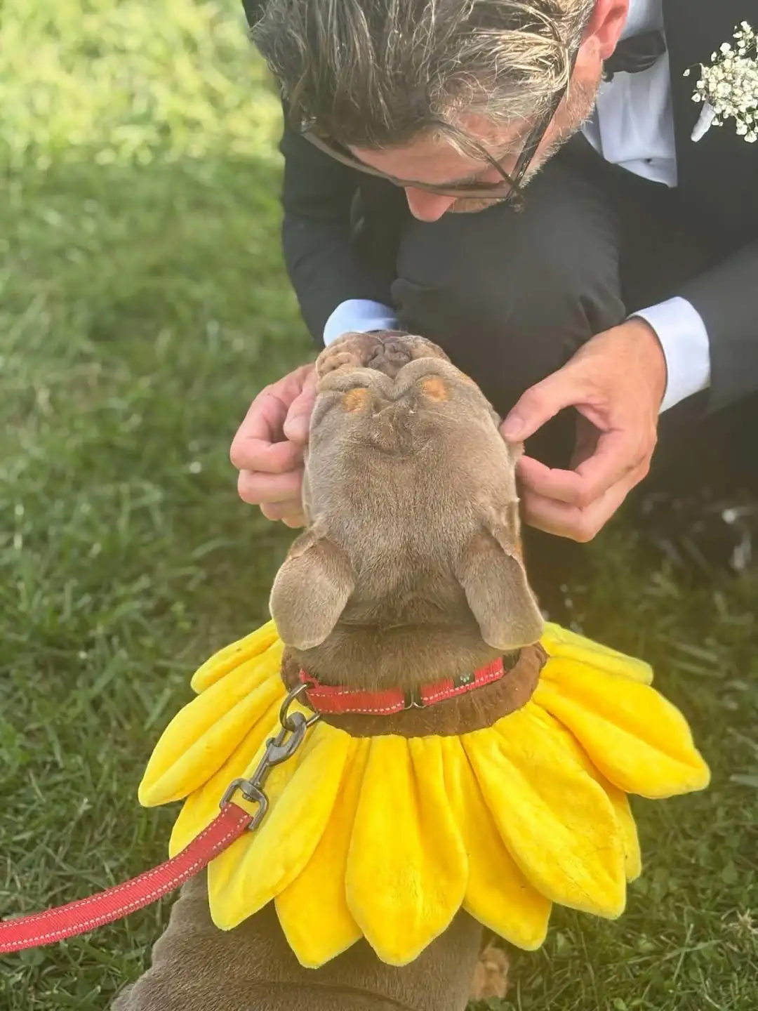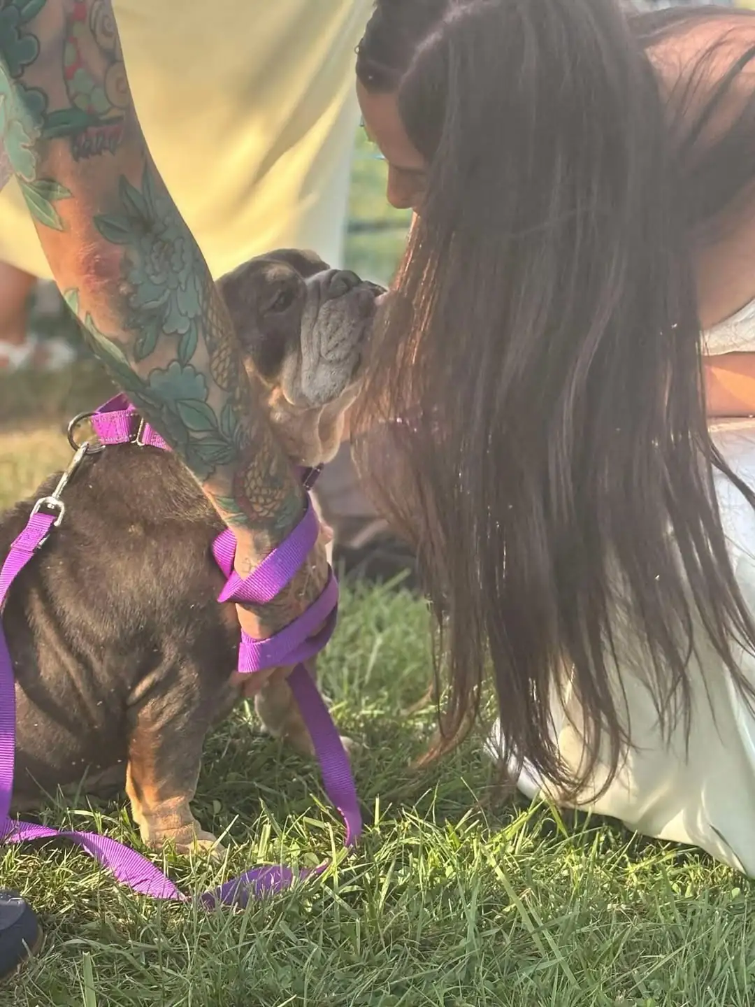 Os animais, incluindo filhotes e um bulldog de 8 anos com doença terminal, foram levados ao gramado do local pela ONG Outcast Rescue, que atua com lares temporários para cães abandonados. Ali, receberam abraços, carinhos e atenção dos presentes. “Quase todos os convidados pensaram: ‘Estou perdido!’. Nós nos cercamos de amantes de cães, então sabíamos que todos ficariam animados, mas foi muito especial ver como até a equipe do evento ficou feliz em vê-los também”, brincou a noiva.