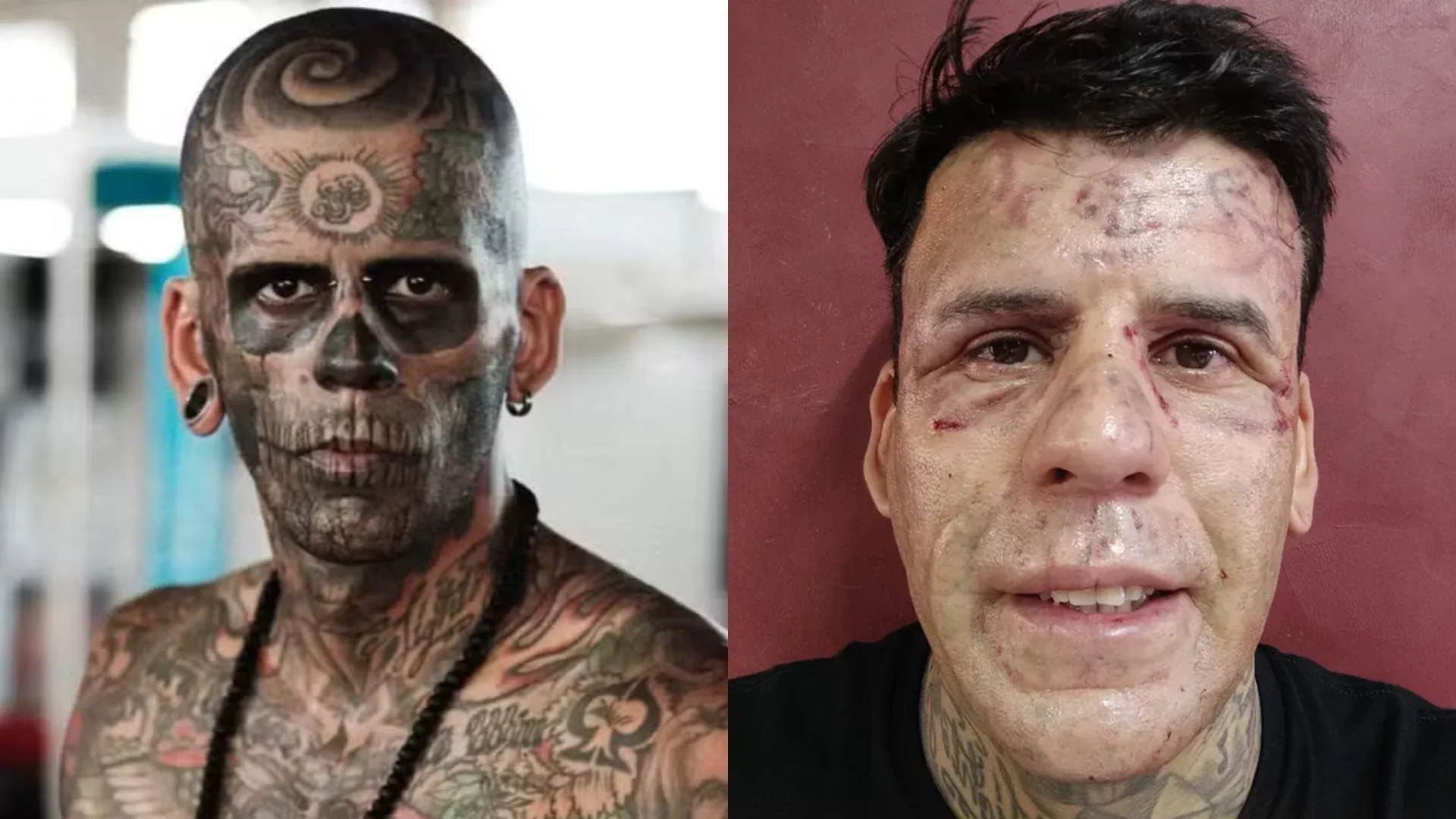 O gaúcho Leandro de Souza, conhecido como o “homem mais tatuado do Brasil”, compartilhou nas redes sociais os resultados de mais uma sessão de remoção a laser das tatuagens no rosto. Morador de Bagé, no interior do Rio Grande do Sul, ele iniciou o processo após se converter ao evangelho.