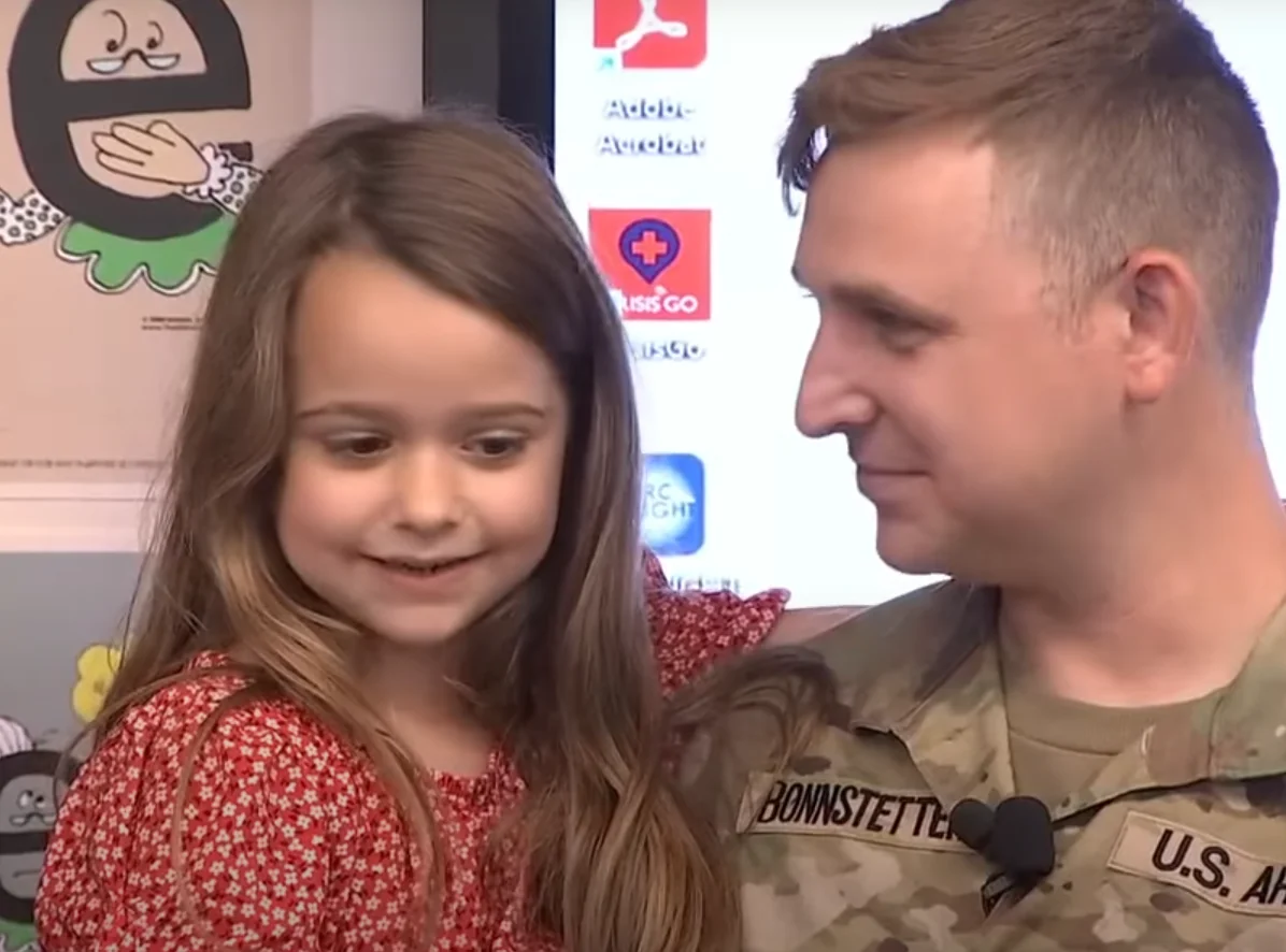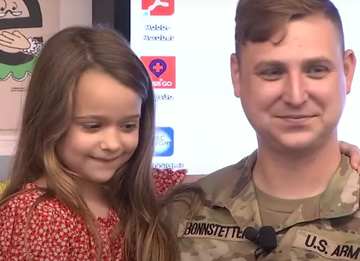 A estudante Ava Bonstetter, do ensino fundamental em Coweta, Oklahoma (EUA), viveu um reencontro inesquecível ao ser surpreendida pelo pai, o militar do Exército norte-americano Austin Bonstetter. Ele havia passado quase um ano em missão no Oriente Médio e voltou para casa na última quarta-feira (10).