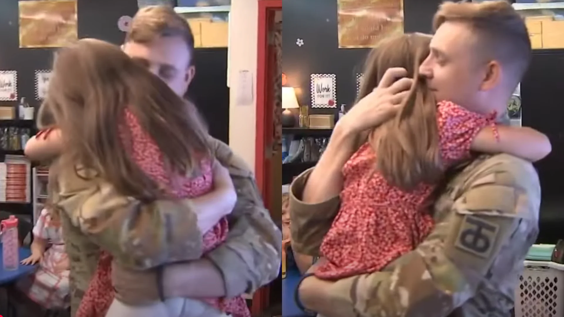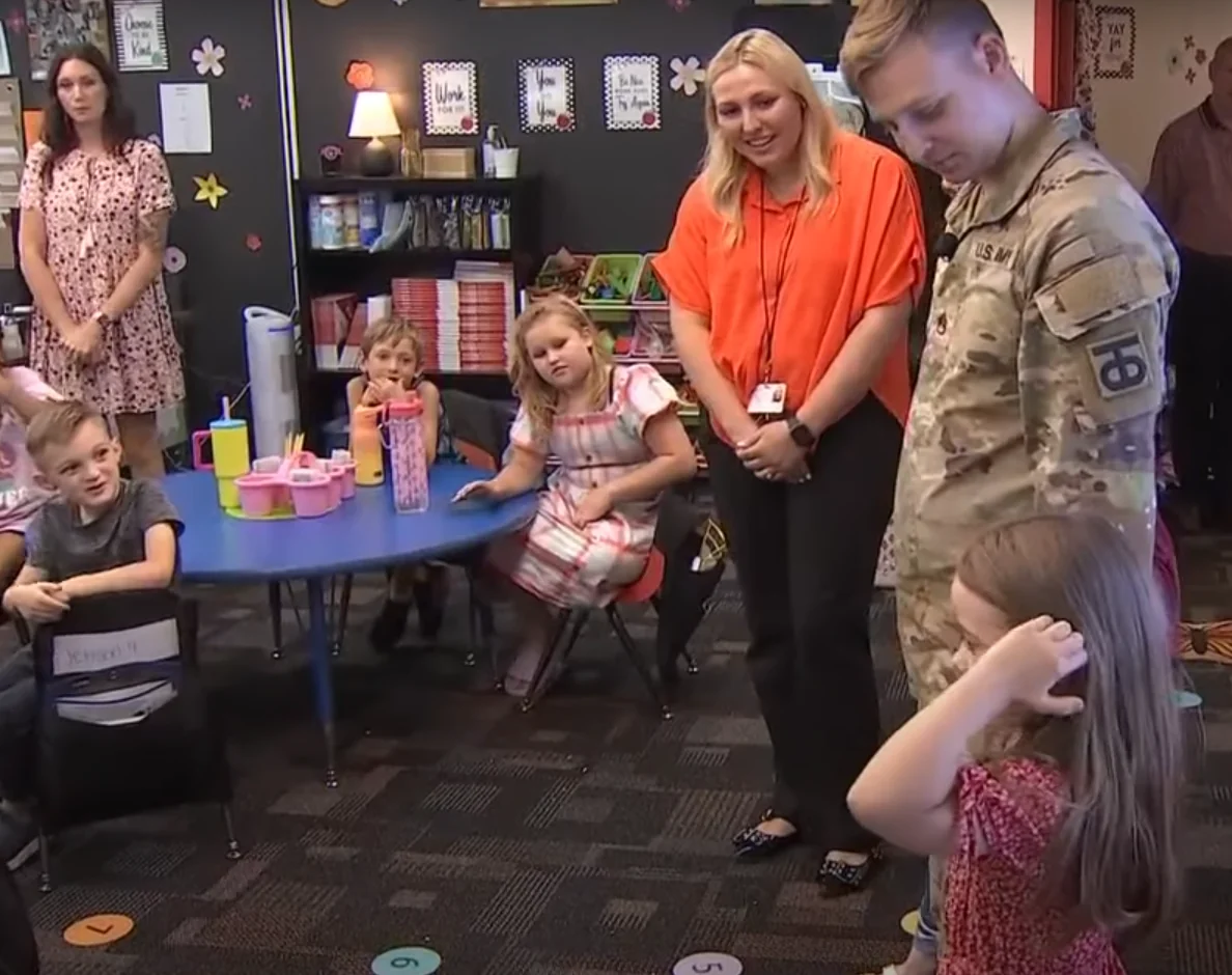 Austin estava afastado da família havia 309 dias. Com a ajuda da esposa e da direção da Northwest Elementary School, ele organizou a surpresa para a filha. Em vídeo registrado por emissoras locais, o militar aparece entrando fardado na sala de aula e sendo recebido com um abraço apertado da menina. “É tudo graças à minha esposa. Ela pensou em todo o plano”, disse em entrevista à Fox 23.