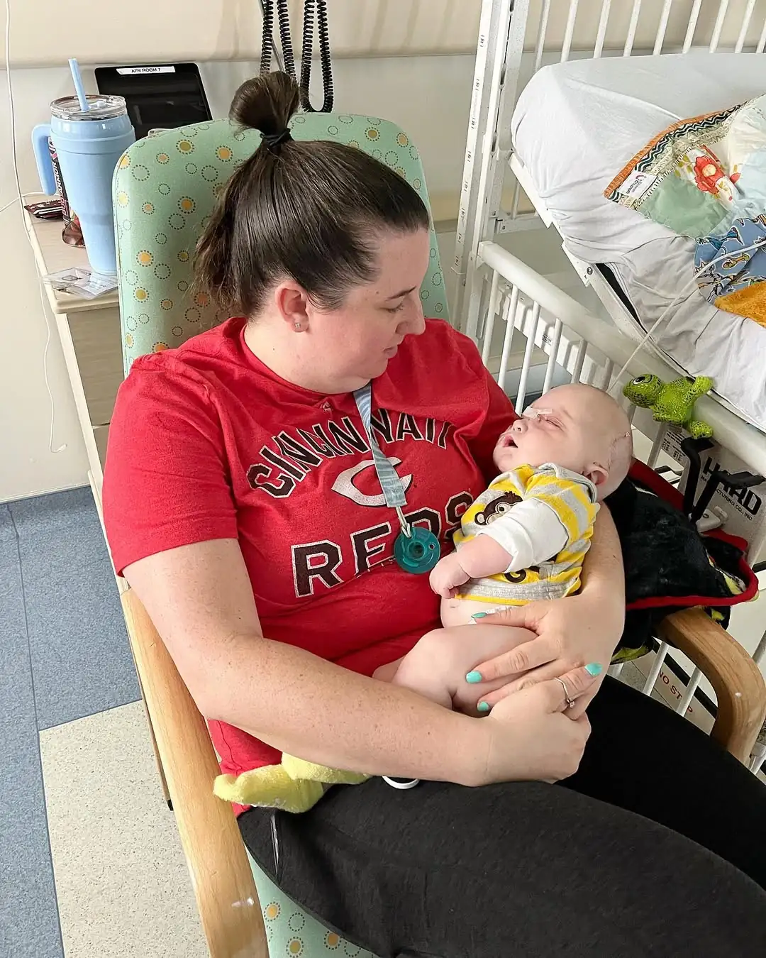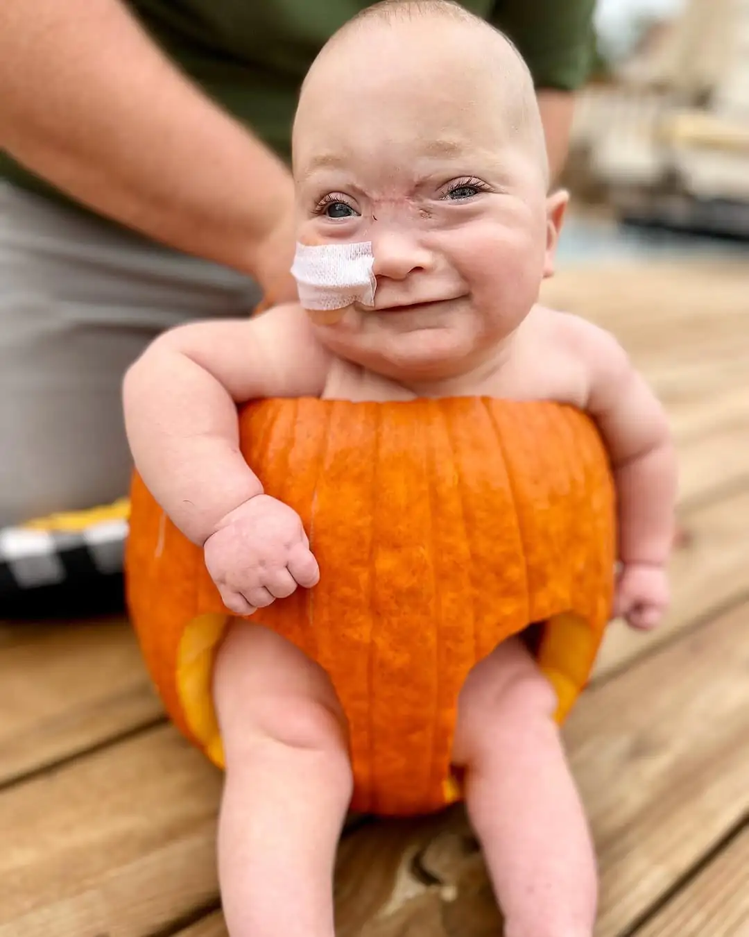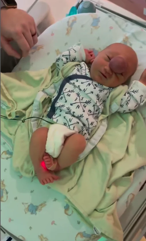 Logo após o parto, Liam foi levado para a UTI neonatal. O bebê nasceu com um grande bolsa de fluido entre os olhos e precisou de oxigênio para manter os níveis estáveis. Após 13 dias, recebeu alta, mas duas semanas depois enfrentou uma hidrocefalia grave, causada pelo acúmulo de líquido no cérebro. “Ele tinha um mês de vida e já estava passando pela primeira cirurgia cerebral. Foi muito difícil vê-lo naquele estado”, relatou a mãe ao The Mirror.