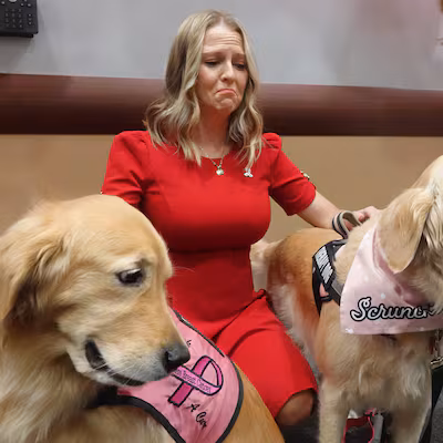 Priscilla passou por 21 dias de luta intensa contra a falência de órgãos e problemas de mobilidade. Ela revelou que se lembrava de ter ouvido que receberia uma visita especial e que sentir a pata de Scrunchie lhe deu forças para tentar reagir. Após acordar, também conheceu Honey Crisp, outra cadela de terapia que a visitava.