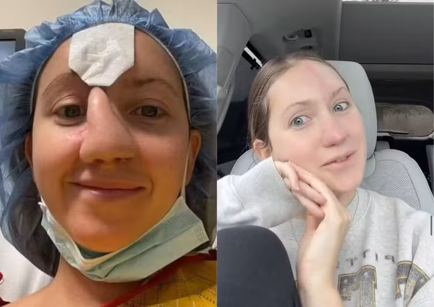 Levou semanas para que ela entendesse a gravidade: socorrida às pressas, foi internada e submetida inicialmente a limpeza da ferida e proteção das vias aéreas. A partir dali, começou um longo caminho de reconstrução. Os médicos optaram por um procedimento altamente complexo: criar um novo nariz a partir de pele da testa de Jordan, combinado com cartilagem retirada de costelas e orelhas para estruturar a cavidade nasal.