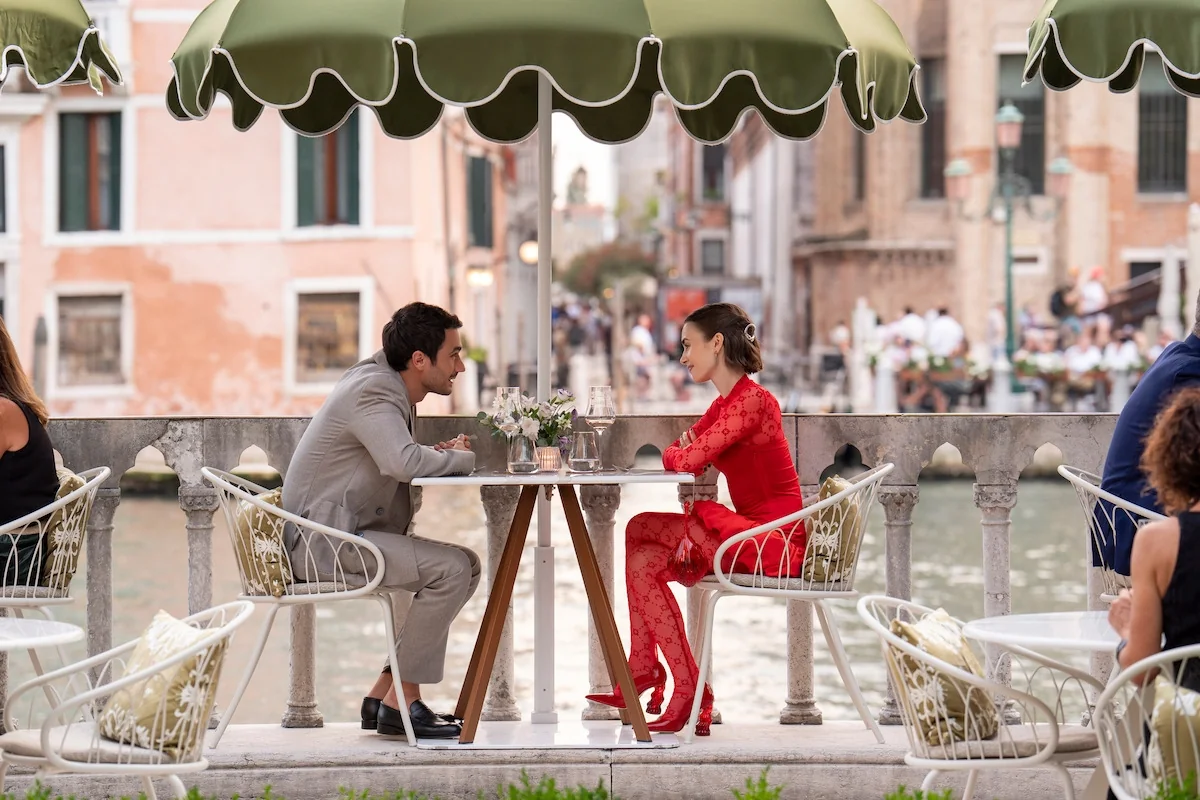 Entre os destaques está o restaurante Moro, em Veneza, onde Emily e Marcello compartilham um jantar romântico. Já em Roma, Emily e sua amiga Mindy se encontram no sofisticado Gio’s, localizado no hotel St. Regis. Outro ponto marcante é o terraço do restaurante La Minerva, no Orient Express, onde os personagens se despedem da cidade.