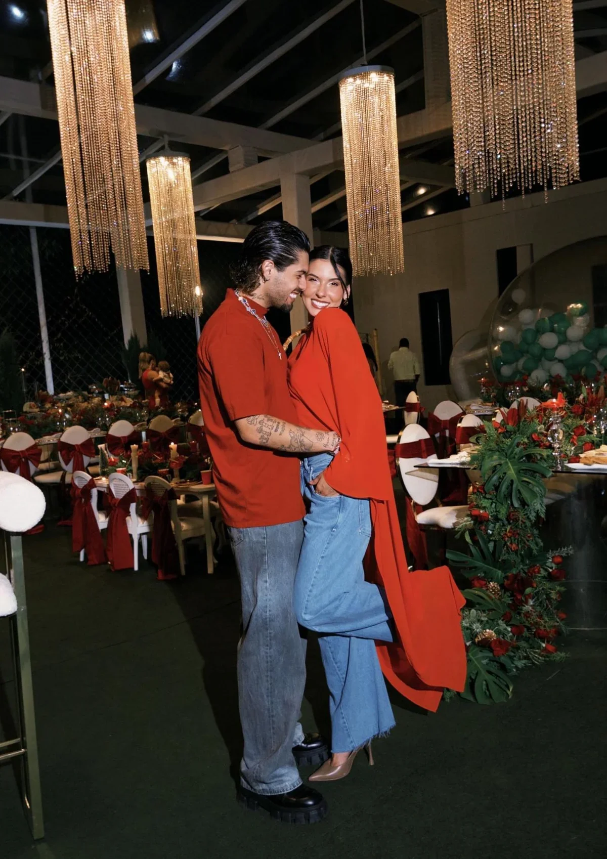 Na noite do dia 24, ela optou por um jantar mais reservado com a família de Vini Jr. Poucos registros foram publicados, mas fotos ao lado do jogador em frente à árvore de Natal chamaram atenção pelo uso de anéis com a letra “V”, cravejados de diamantes. O casal tornou público o relacionamento em outubro.