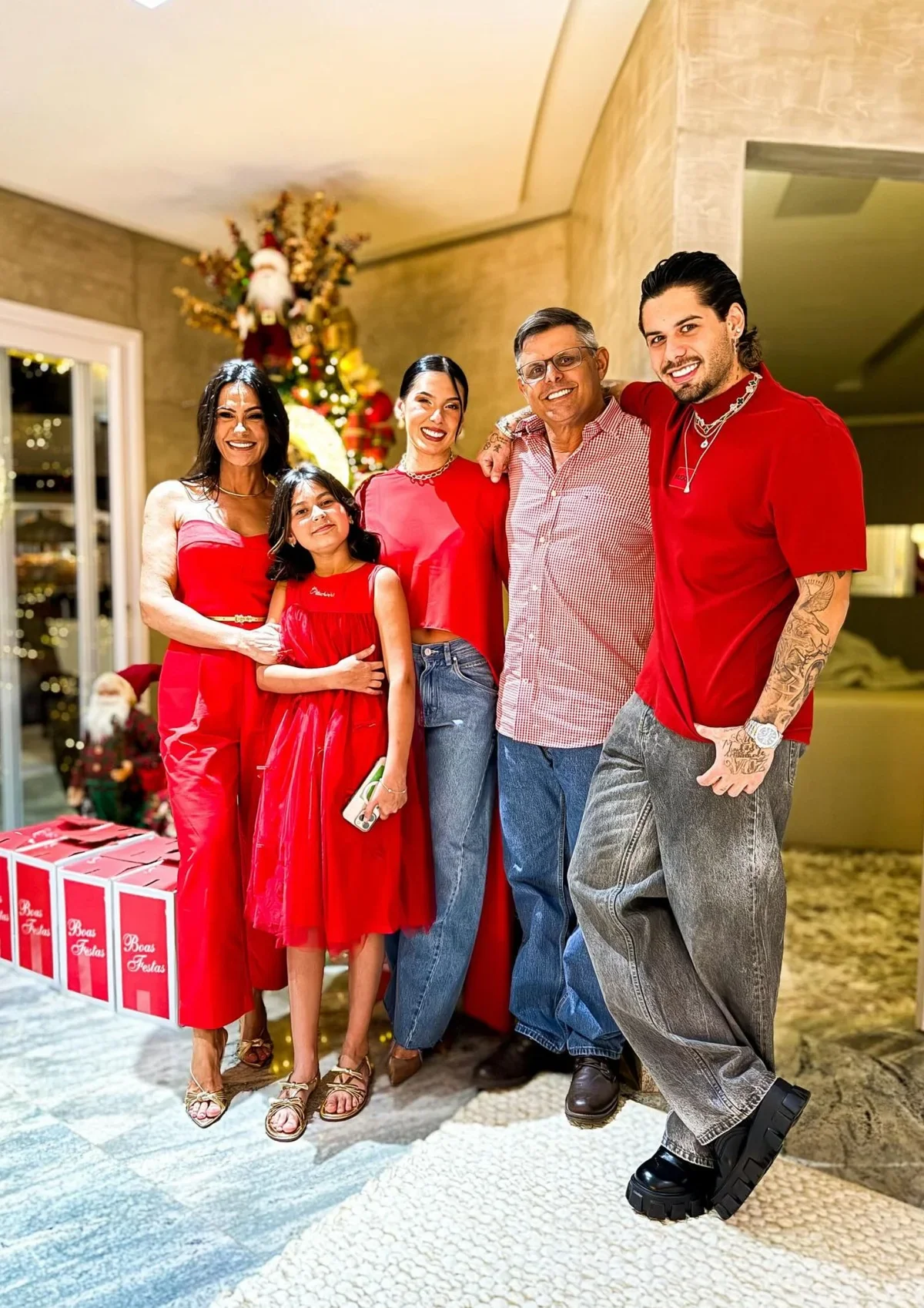 Na noite do dia 24 de dezembro, Zé Felipe reuniu os pais, Leonardo e Poliana Rocha, os irmãos — incluindo João Guilherme, que viajou de São Paulo — e os pais de Ana Castela, Michele e Rodrigo. O casal recebeu os convidados em casa e participou ativamente da festa como anfitriões.