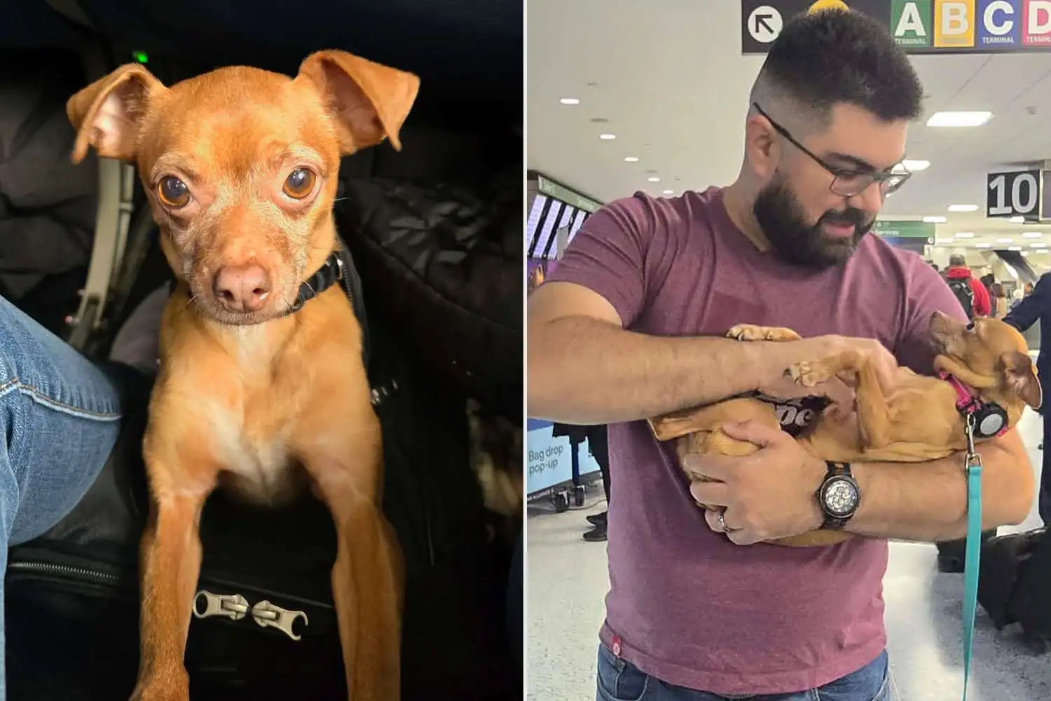 Bella, a chihuahua que percorreu 1.700 km em cinco anos, reencontra o tutor Sergio no aeroporto de Houston. (Foto: Instagram)
