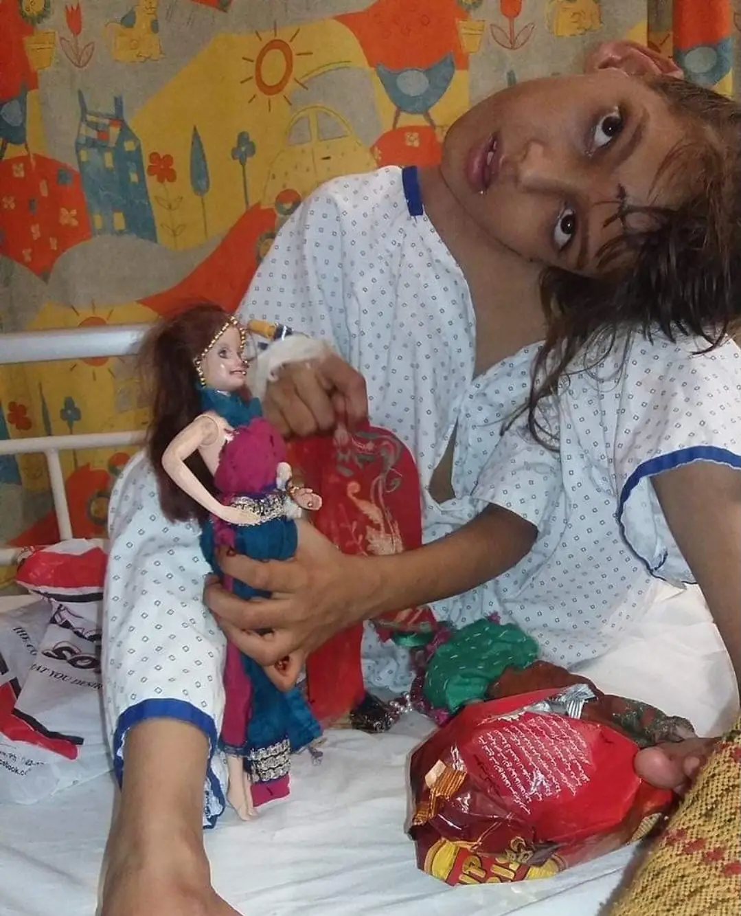 A jovem Afsheen Gul, natural de Sindh, desenvolveu a rara condição após um acidente ainda na infância, que não foi tratado adequadamente na época. O problema evoluiu para o que os médicos chamam de luxação rotatória atlanto-axial, uma deformidade grave da coluna cervical que deixou seu pescoço permanentemente dobrado. Ela também enfrentava paralisia cerebral, o que agravava sua mobilidade e provocava dores constantes ao longo dos anos.