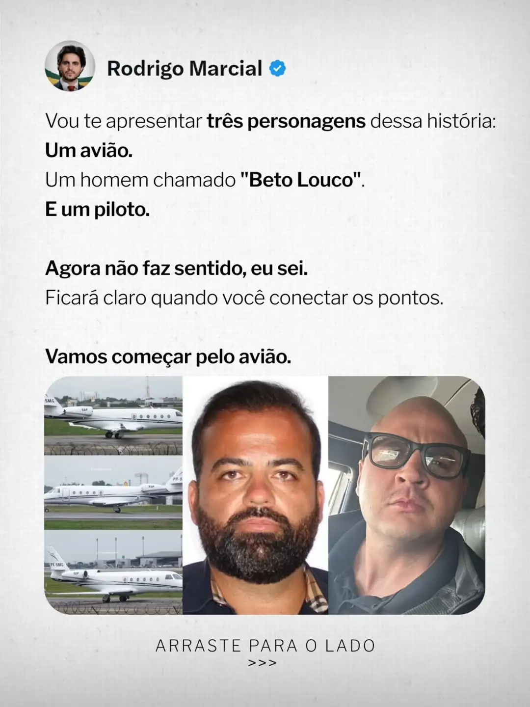 “A conexão entre os três passa por um avião, o PCC e R$ 400 milhões”, afirmou o parlamentar.