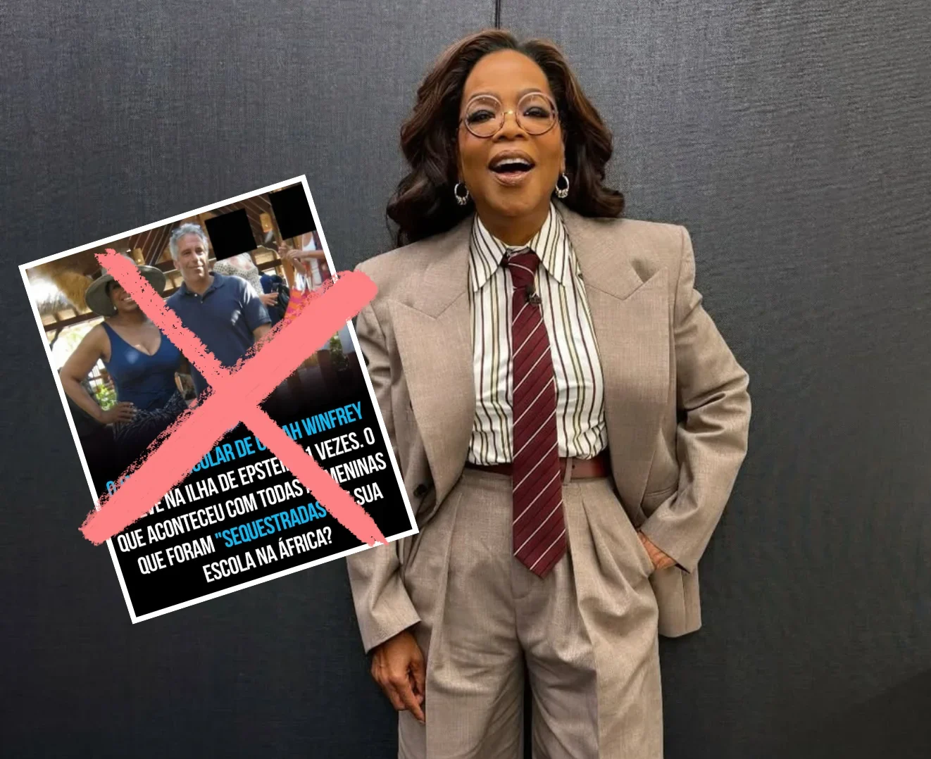Publicações feitas nas redes sociais afirmam que o jato particular da apresentadora esteve na ilha de Jeffrey Epstein 11 vezes e levantou questionamentos sobre supostos desaparecimentos de alunas na África. No entanto, verificações independentes classificaram a alegação como falsa.