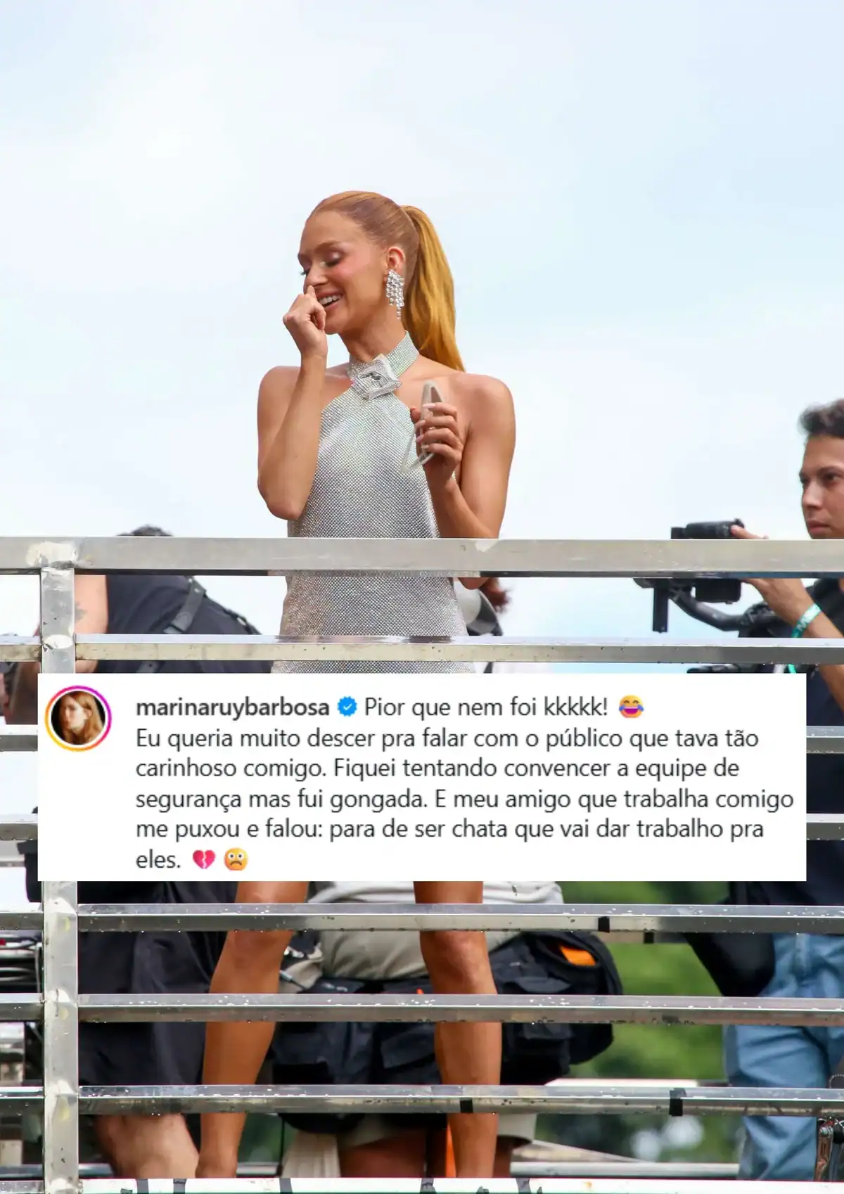 Entenda por que Marina Ruy Barbosa não conseguiu descer do trio elétrico
