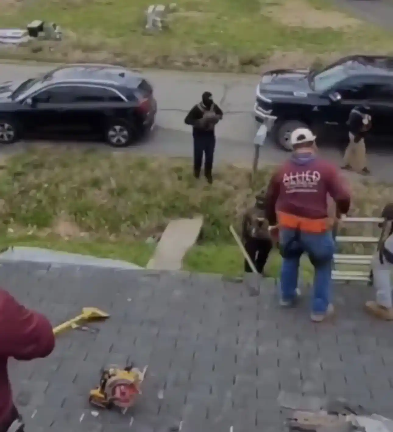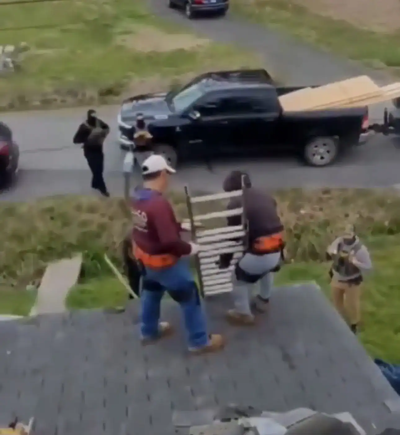 Os trabalhadores haviam saído de Glen Burnie para iniciar o serviço quando foram surpreendidos pelos agentes. Imagens registradas por um colega mostram o momento em que a casa é cercada e os homens são retirados do telhado e detidos no local.