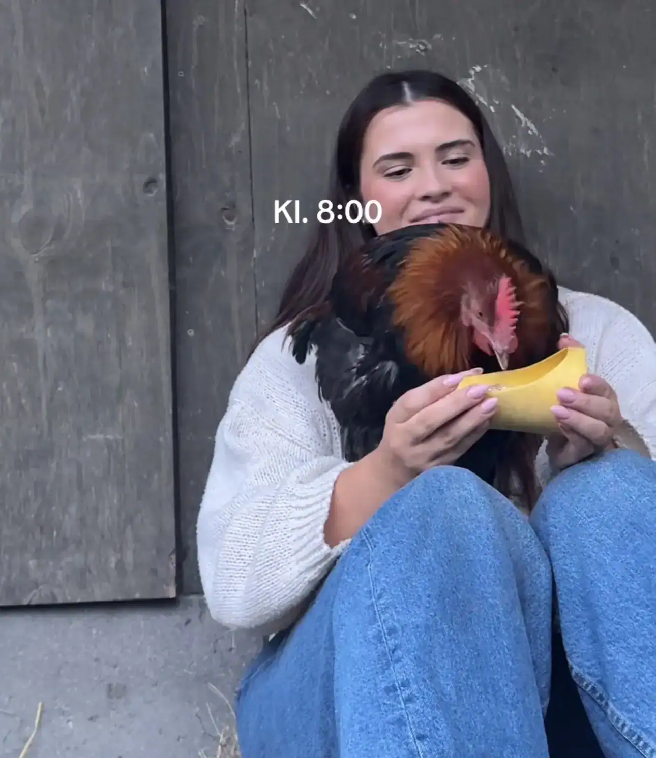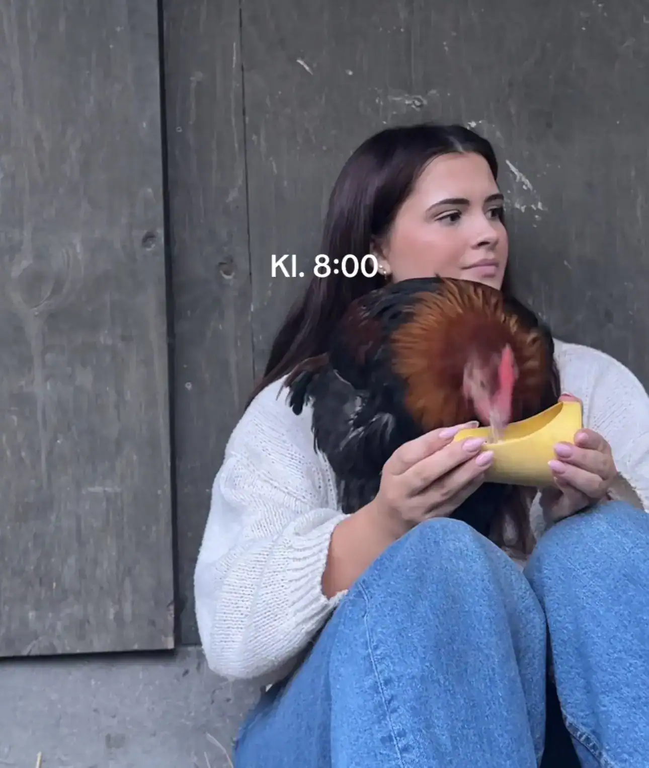 A jovem Freja passou a chamar atenção nas redes sociais ao adotar uma estratégia inusitada para se sentir mais segura ao caminhar sozinha à noite. Ela leva sua galinha de estimação, chamada Tiptoe, presa a uma coleira durante os passeios.
